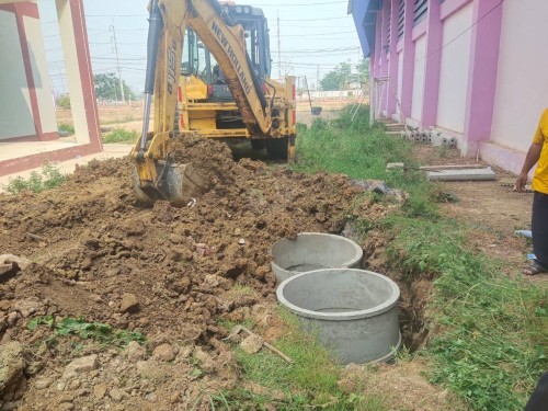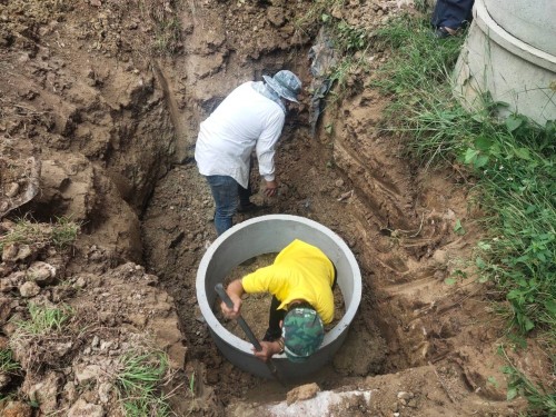 1. เจ้าหน้าที่ภาคสนามกองช่างสุขาภิบาล เข้าดำเนินการขุดหลุมพร้อมวางท่อ (บ่อเกรอะ)