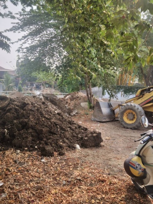 3. เจ้าหน้าที่ภาคสนามกองช่างสุขาภิบาล เข้าดำเนินการปรับเกลี่ยกองดิน