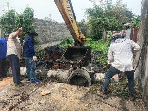 เข้าดำเนินการขุดวางท่อระบายน้ำ ค.ส.ล. 60 ซม. พร้อมบ่อพัก ร่วมกับกองช่างฯ บริเวณชุมชนประชารักษ์