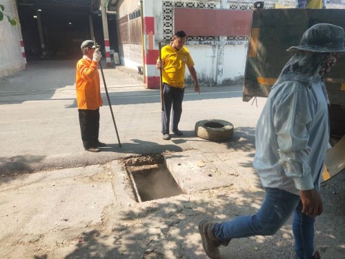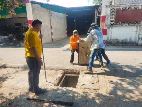 2. เจ้าหน้าที่ภาคสนามกองช่างสุขาภิบาล เข้าดำเนินการ เปลี่ยนฝาท่อระบายน้ำชำรุด บริเวณโกดังฮงเฮงฮวด (หลังสถานีดับเพลิง)