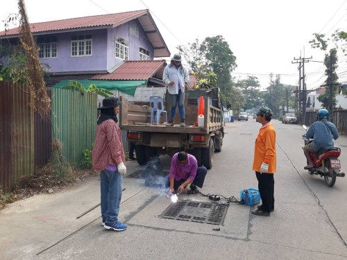 เข้าดำเนินการซ่อมแซมฝาท่อระบายน้ำชำรุด (มีเสียงดัง) บริเวณชุมชนประชารักษ์ ถนนเส้นบ้านพ่อเลี้ยงยง , บ้านป้าน้อย