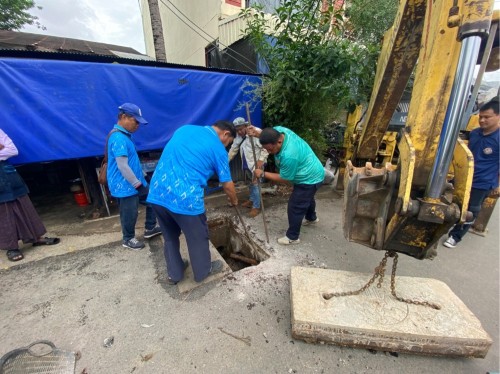 ได้เข้าดำเนินการเปลี่ยนฝาท่อระบายน้ำ บริเวณสี่แยกโรงเรียนอิสลาม (ซอยน้ำบ่อ)