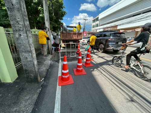 2. ได้เข้าดำเนินการเปลี่ยนฝาท่อระบายน้ำ บริเวณหน้าโรงพยาบาลแม่สอด