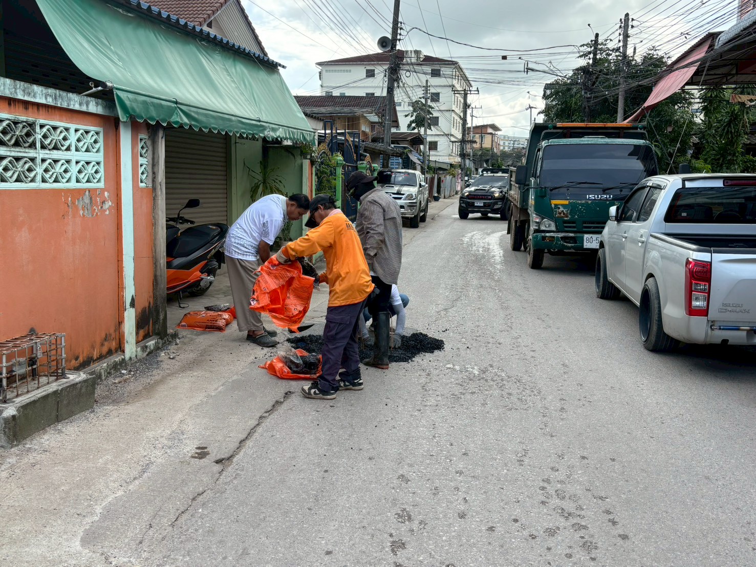 1. ได้เข้าดำเนินการลงยางมะตอยฝาท่อระบายน้ำ บริเวณถนนบัวคูณ จำนวน 1 จุด