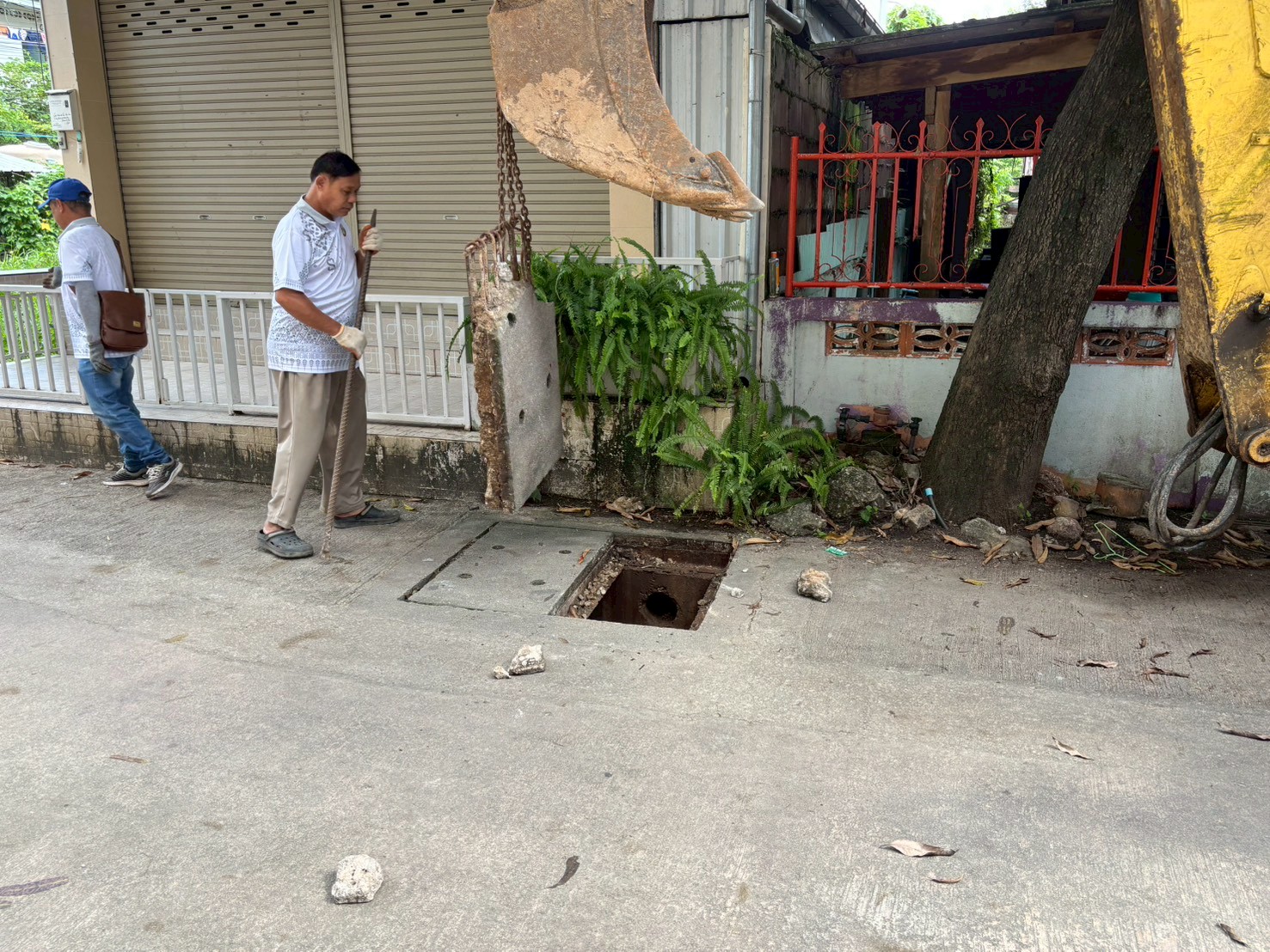 2. ได้เข้าดำเนินการเปลี่ยนฝาท่อระบายน้ำ บริเวณถนนเย็นอากาศ จำนวน 2 ฝา