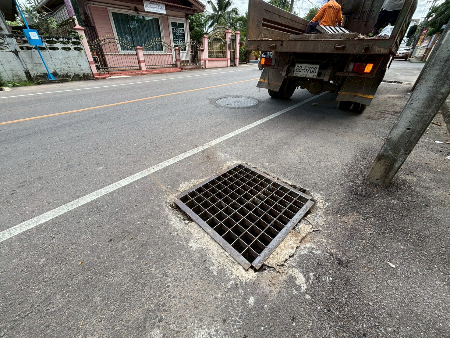 3. ได้เข้าดำเนินการเปลี่ยนฝาท่อระบายน้ำ บริเวณถนนหลังโลตัสเก่า จำนวน 1 ฝา