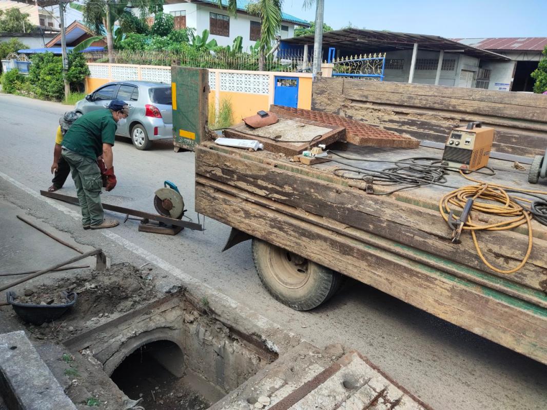 ออกซ่อมแซมฝาท่อระบายน้ำชำรุด บริเวณถนนราษฎร์อุทิศ