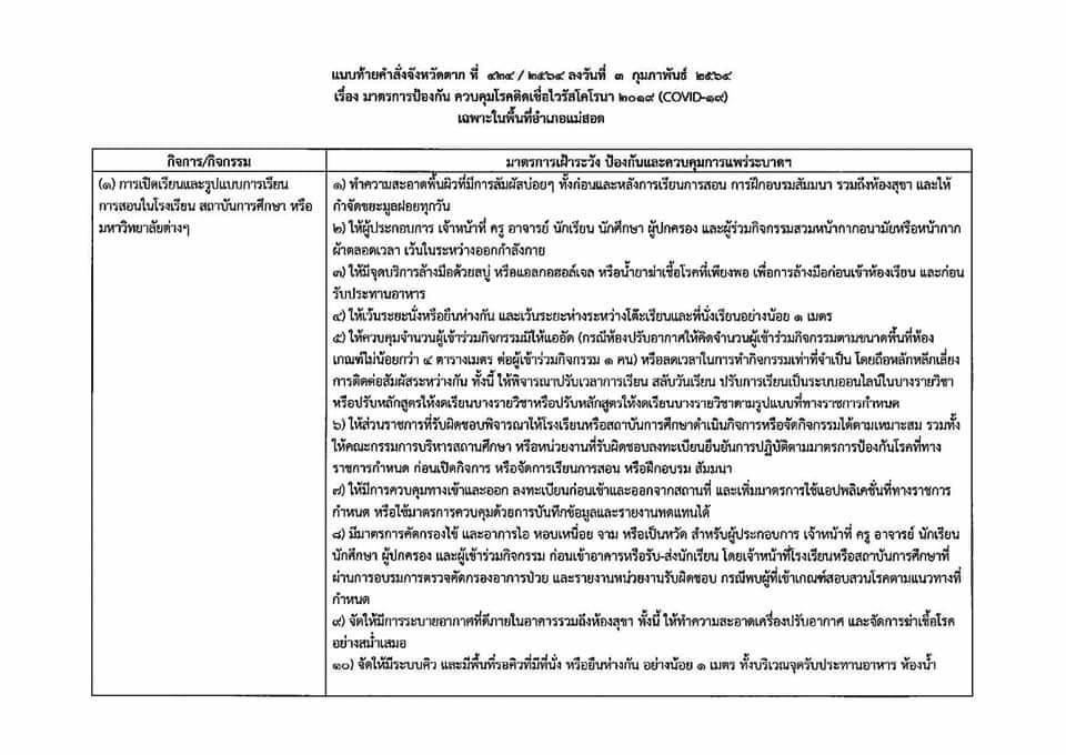คำสั่งจังหวัดตาก ที่ 424/2564 เรื่อง มาตรการป้องกัน ควบคุมโรคติดเชื้อไวรัสโคโรนา 2019 (โควิด-19) เฉพาะในพื้นที่อำเภอแม่สอด