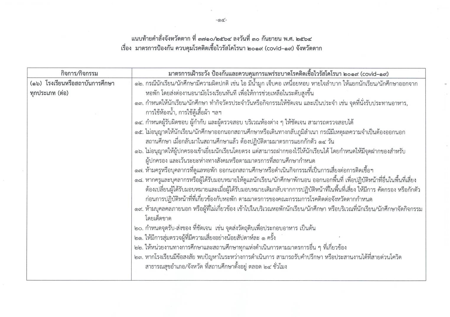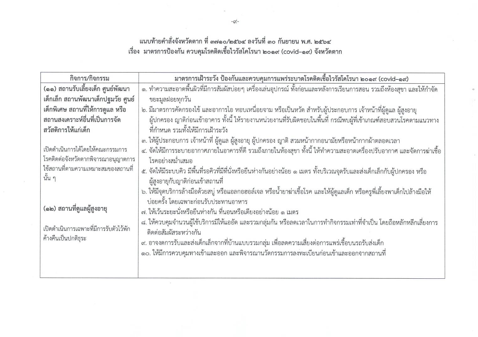 คำสั่งจังหวัดตาก ที่ 3710/ 2564 เรื่อง มาตรการป้องกัน ควบคุมโรคติดเชื้อไวรัสโคโรนา 2019 (covid–19) จังหวัดตาก