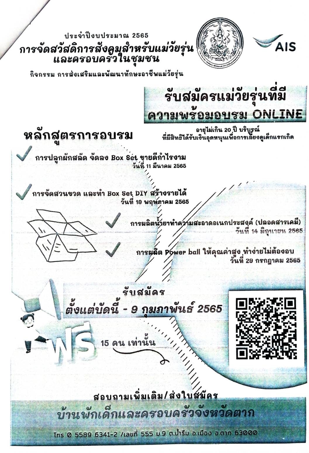ประชาสัมพันธ์รับสมัครแม่วัยรุ่นที่มีความพร้อมอบรม ONLINE
