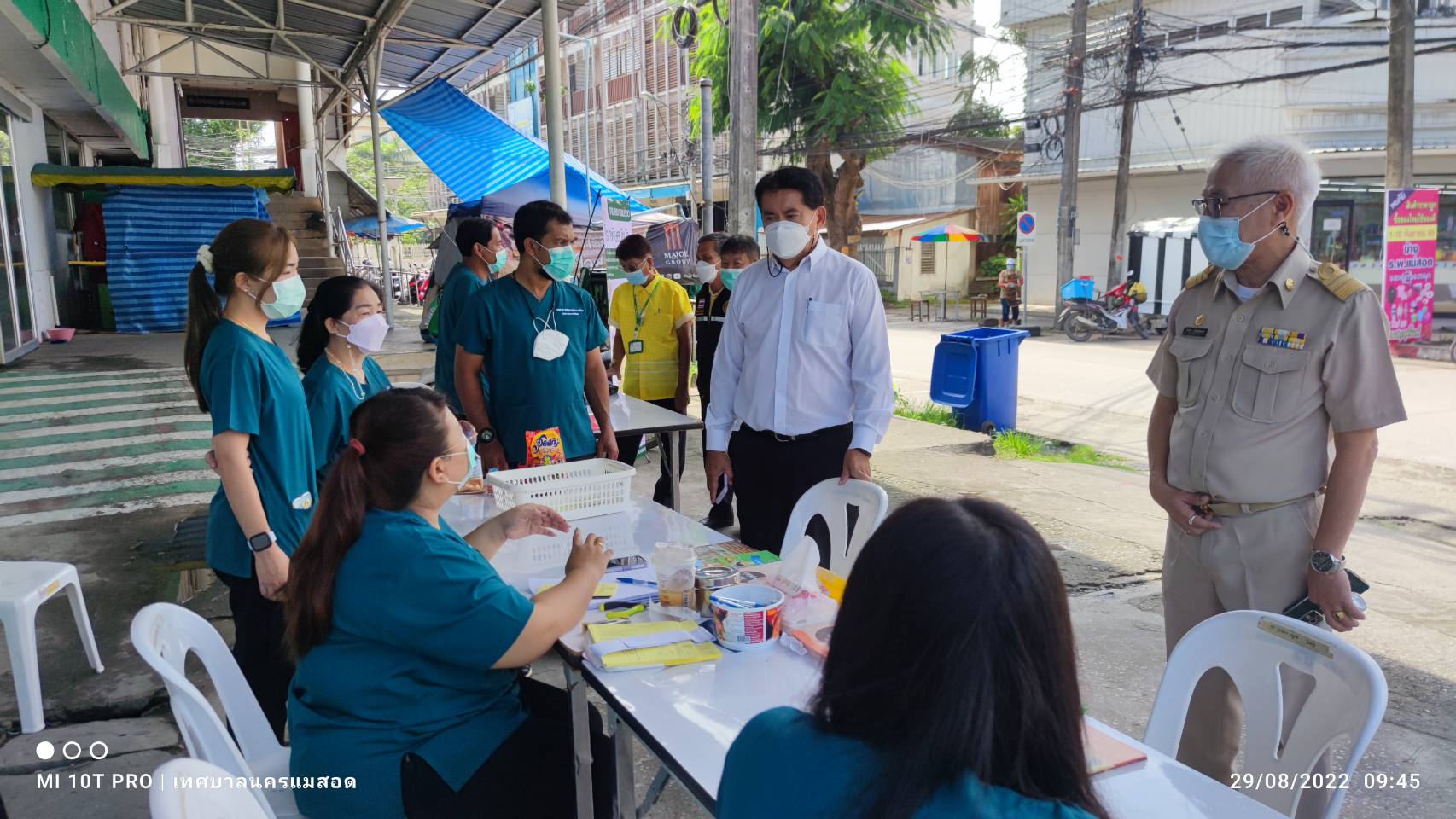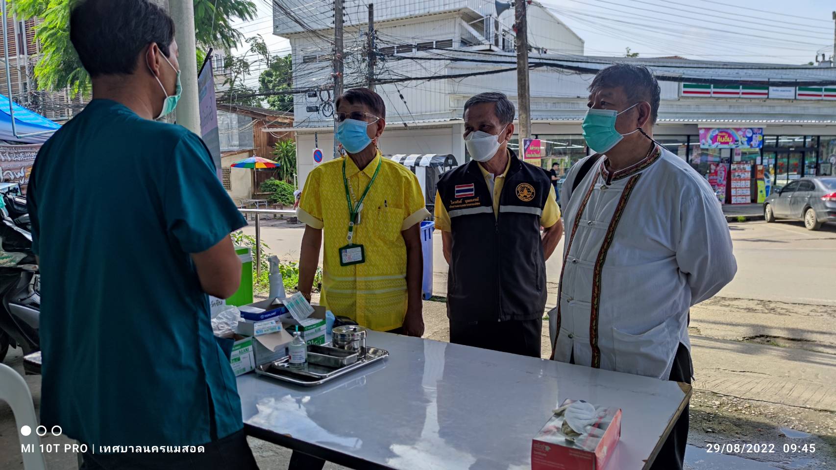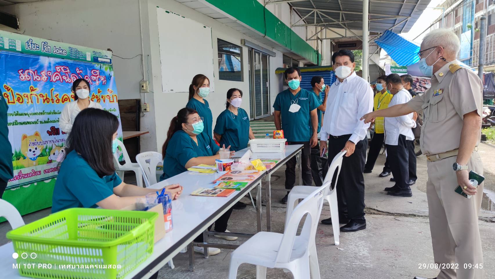 เดินทางมาตรวจเยี่ยมให้กำลังใจเจ้าหน้าที่กองสาธารณสุขและสิ่งแวดล้อม ในการออกบริการฉีดวัคซีนป้องกันโรคพิษสุนัขบ้าในสัตว์เลี้ยงสุนัขและแมว พร้อมรับลงทะเบียนสัตว์เลี้ยงที่อยู่ในเขตเทศบาลนครแม่สอด (รอบเก็บตก)