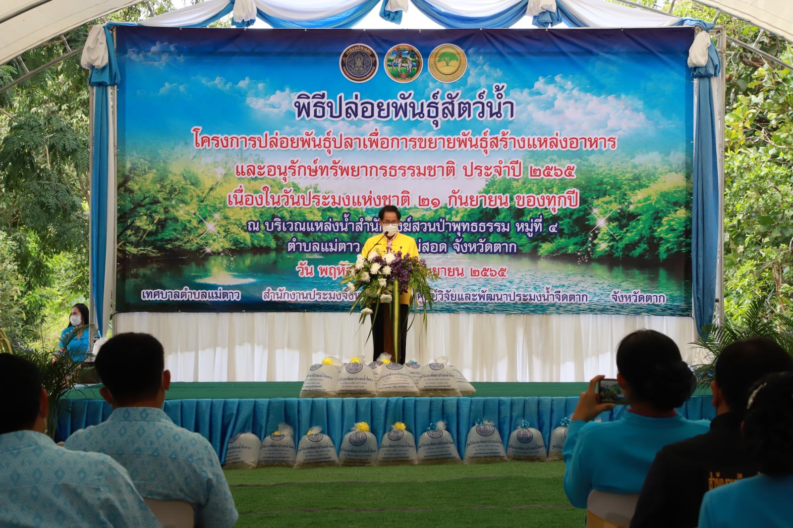 เพื่อปลูกจิตสำนึกให้ประชาชนทุกภาคส่วนได้ร่วมกันรักษาสมดุลระบบนิเวศ โดยการปล่อยพันธุ์ปลาให้กลับสู่คืนธรรมชาติ และอนุรักษ์สิ่งแวดล้อมให้ดีขึ้น เพื่อมอบพันธุ์ปลาให้แก่ประชาชนไปสร้างแหล่งอาหารภายในครัวเรือน โดยได้รับการสนับสนุนพันธ์ปลาจากสำนักงานประมงจังหวัดตาก ศูนย์วิจัยและพัฒนาประมงน้ำจืดตาก จำนวน 300,000 ตัว เพื่อดำเนินกิจกรรมดังกล่าว