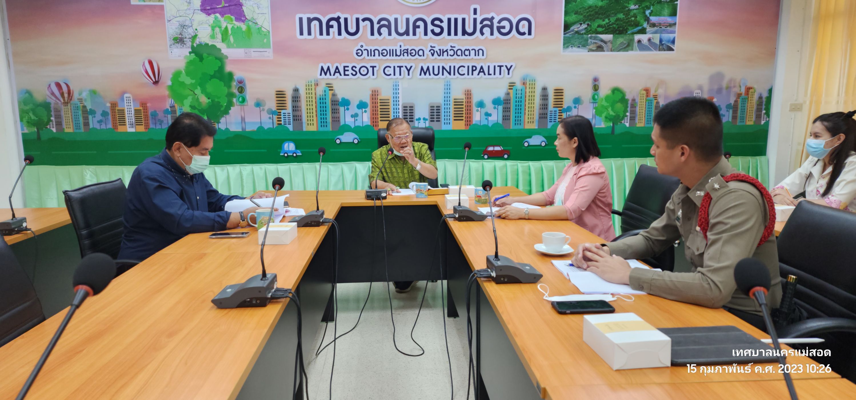 เมื่อวันพุธ ที่ 15 กุมภาพันธ์ 2566 เวลา 10.00 น. ณ ห้องประชุมโกเมน ชั้น 2สำนักงานเทศบาลนครแม่สอด อำเภอแม่สอด จังหวัดตาก