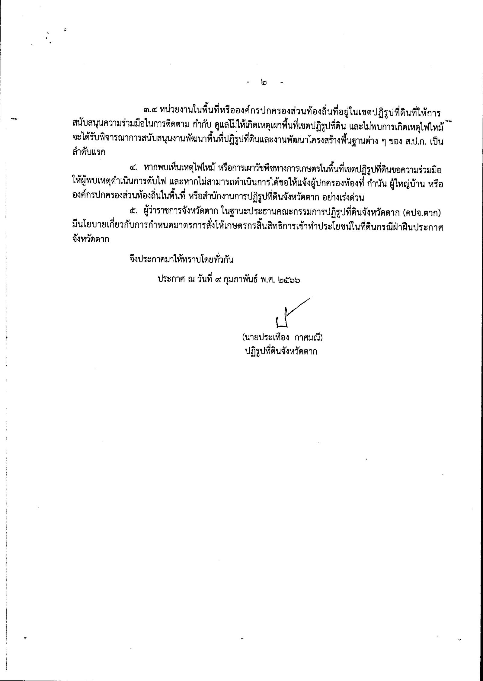 ประกาศสำนักงานการปฏิรูปที่ดินจังหวัดตาก เรื่องขอความร่วมมือห้ามเผาในพื้นที่เขตปฏิรูปที่ดินจังหวัดตาก