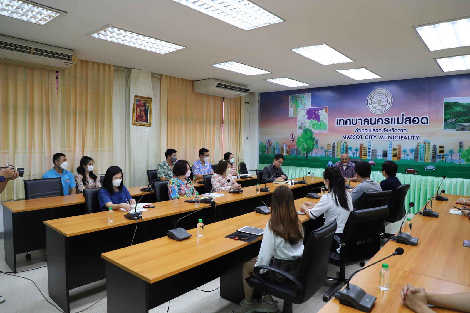 ว่าที่ร้อยตรี ประเสริฐ ปวงละคร นายกเทศมนตรีนครแม่สอด มอบหมายให้นายสุวิทย์ คามณีวงศ์ รองนายกเทศมนตรีนครแม่สอด พร้อมด้วยว่าที่พันตรี ดร.ไพฑูรย์ ปริญญาธรรมกุล ผู้อำนวยการกองยุทธศาสตร์และงบประมาณ ข้าราชการและเจ้าหน้าที่ที่เกี่ยวข้องเทศบาลนครแม่สอด ต้อนรับผู้ช่วยศาสตราจารย์ ดร.ไกรวุฒิ ใจคำปัน คณะรัฐศาสตร์และรัฐประศาสนศาสตร์ มหาวิทยาลัยเชียงใหม่ (หัวหน้าโครงการวิจัยฯ) พร้อมคณะนักวิจัยฯ เพื่อหารือเกี่ยวกับการดำเนินโครงการวิจัยเรื่อง “การขยายผลการพัฒนาระบบบริหารจัดเก็บรายได้องค์กรปกครองส่วนท้องถิ่น”