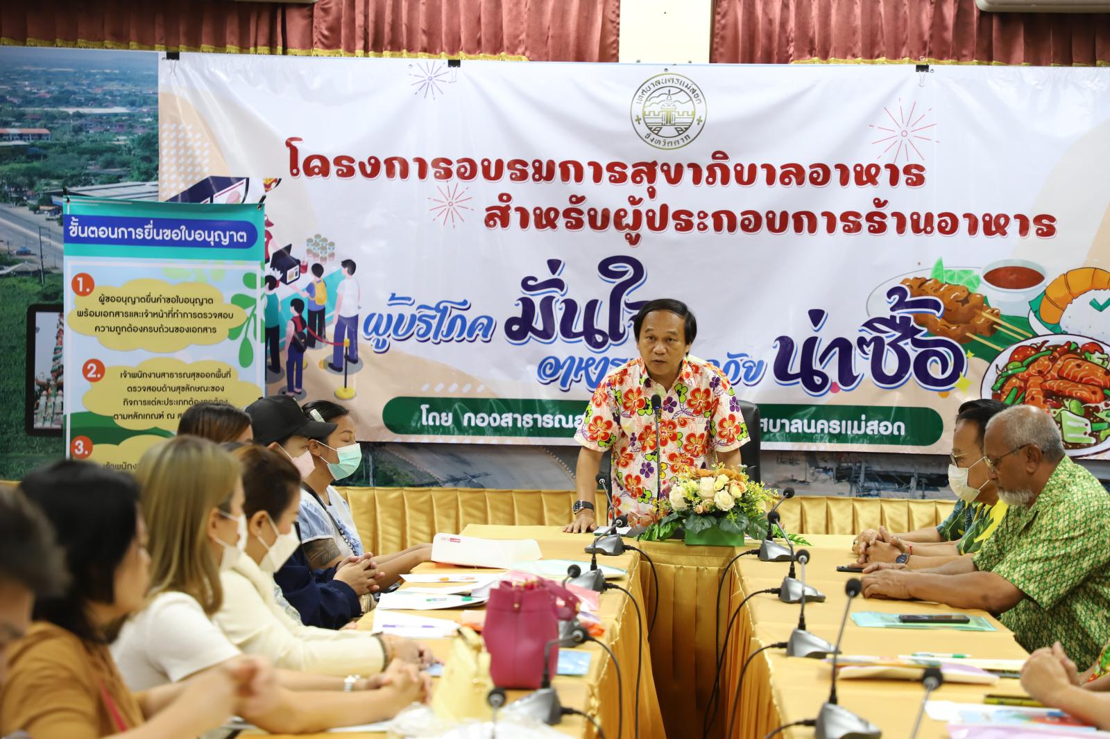 ว่าที่ร้อยตรีประเสริฐ ปวงละคร นายกเทศมนตรีนครแม่สอด เป็นประธาน นายเฉลิมเกียรติ ปัญญาสว่าง ผู้อำนวยการกองสาธารณสุขและสิ่งแวดล้อม เป็นผู้กล่าวรายงาน โดยมี คณะผู้บริหาร สมาชิกสภาเทศบาล ผู้อำนวยการกอง พนักงานที่เกี่ยวข้อง และผู้ประกอบการร้านอาหาร เข้าร่วมโครงการอบรมการสุขาภิบาลอาหารสำหรับผู้ประกอบการร้านอาหาร