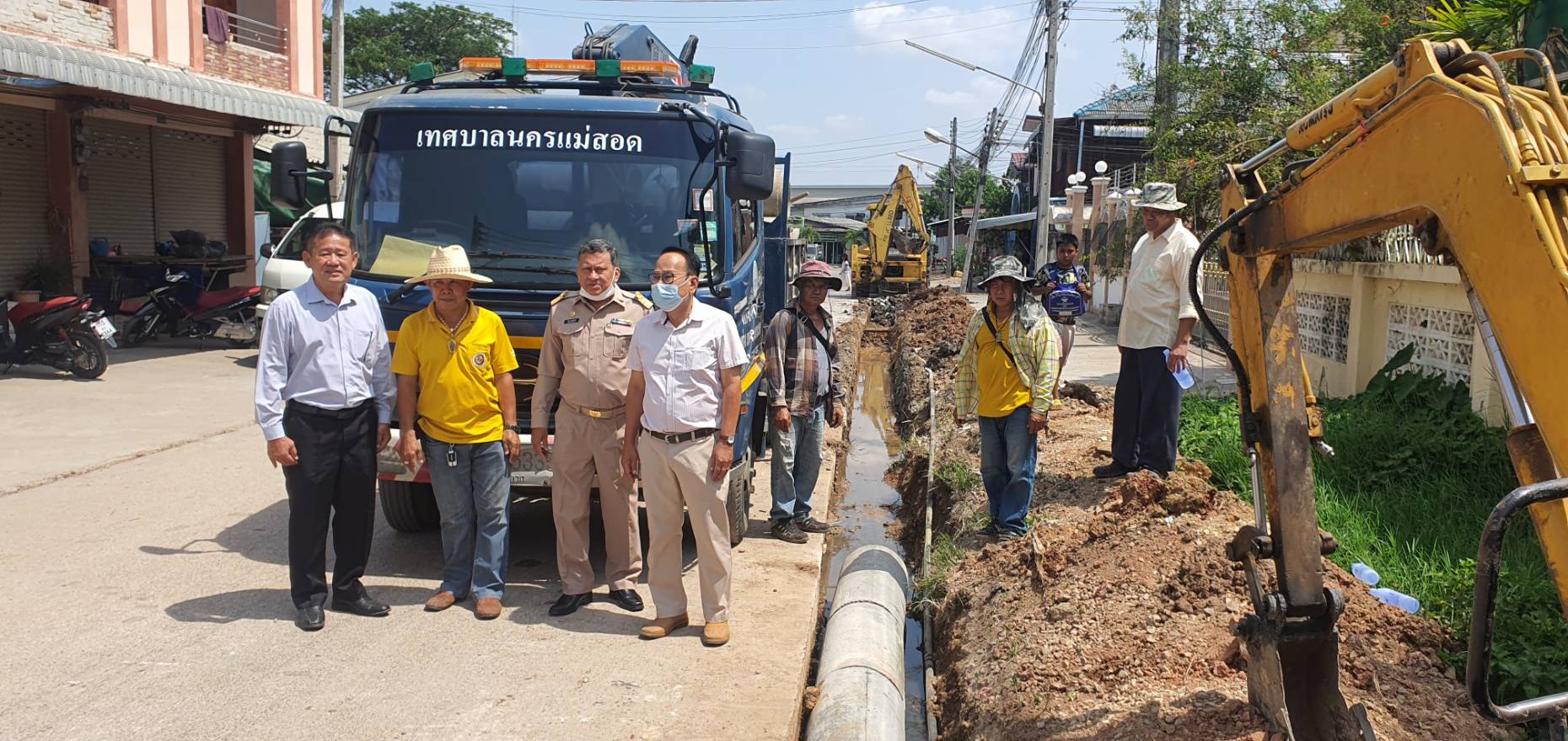 ว่าที่ร้อยตรี ประเสริฐ ปวงละคร นายกเทศมนตรีนครแม่สอด มอบหมายให้นายไกรสร กิจการ รองนายกเทศมนตรี พร้อมด้วยนายปรีชา เพชรปัญญา ที่ปรึกษานายกเทศมนตรี สมาชิกสภาเทศบาลนครแม่สอด และเจ้าหน้าที่ที่เกี่ยวข้องเทศบาลนครแม่สอด ลงพื้นที่ตรวจความคืบหน้าการวางท่อระบายน้ำ เพื่อแก้ไขปัญหาน้ำท่วมขังบ้านเรือนประชาชน