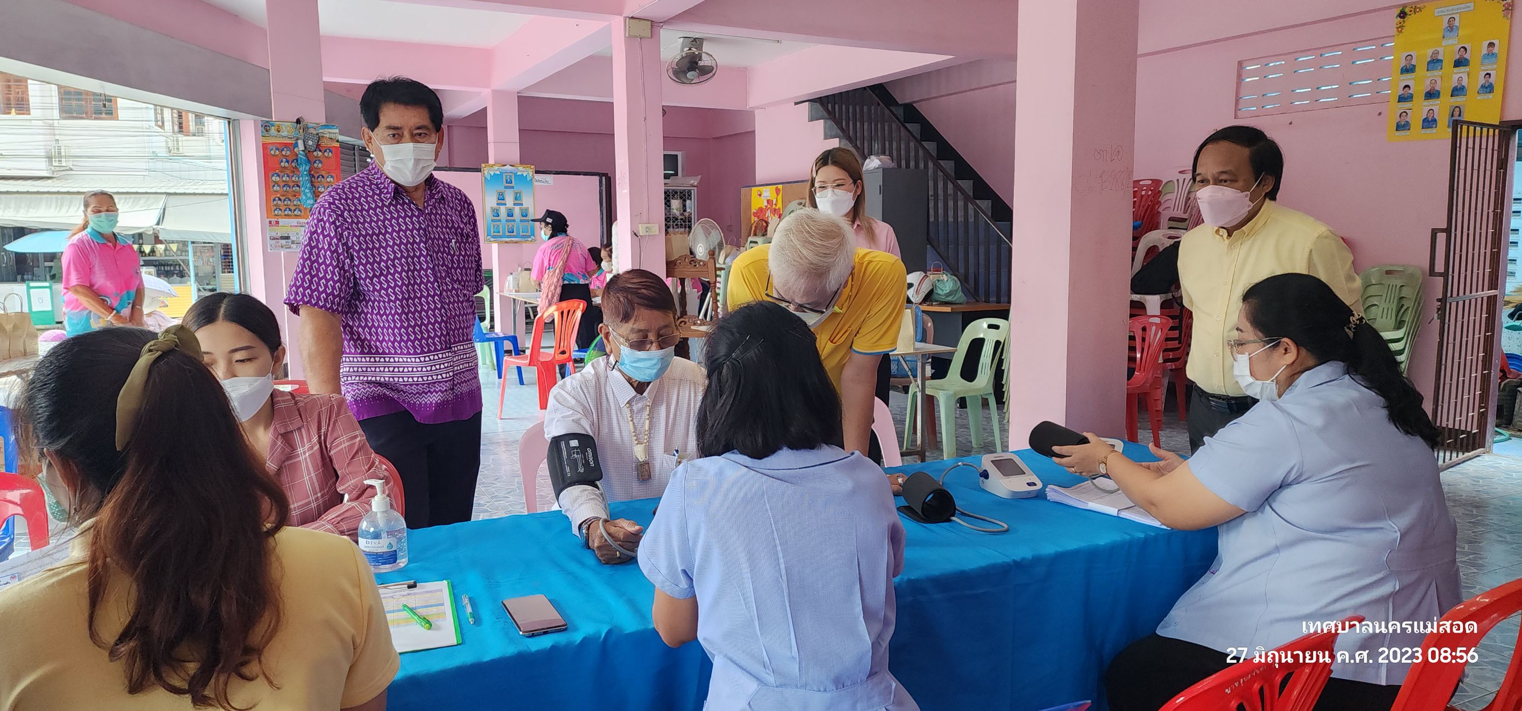 ว่าที่ร้อยตรีประเสริฐ ปวงละคร นายกเทศมนตรีนครแม่สอด พร้อมด้วยคณะผู้บริหาร สมาชิกสภาเทศบาลและเจ้าหน้าที่คลินิกชุมชนอบอุ่น กองสาธารณสุขและสิ่งแวดล้อมเทศบาลนครแม่สอด ร่วมกับกลุ่มอาสาสมัครสาธารณสุขประจำหมู่บ้าน
