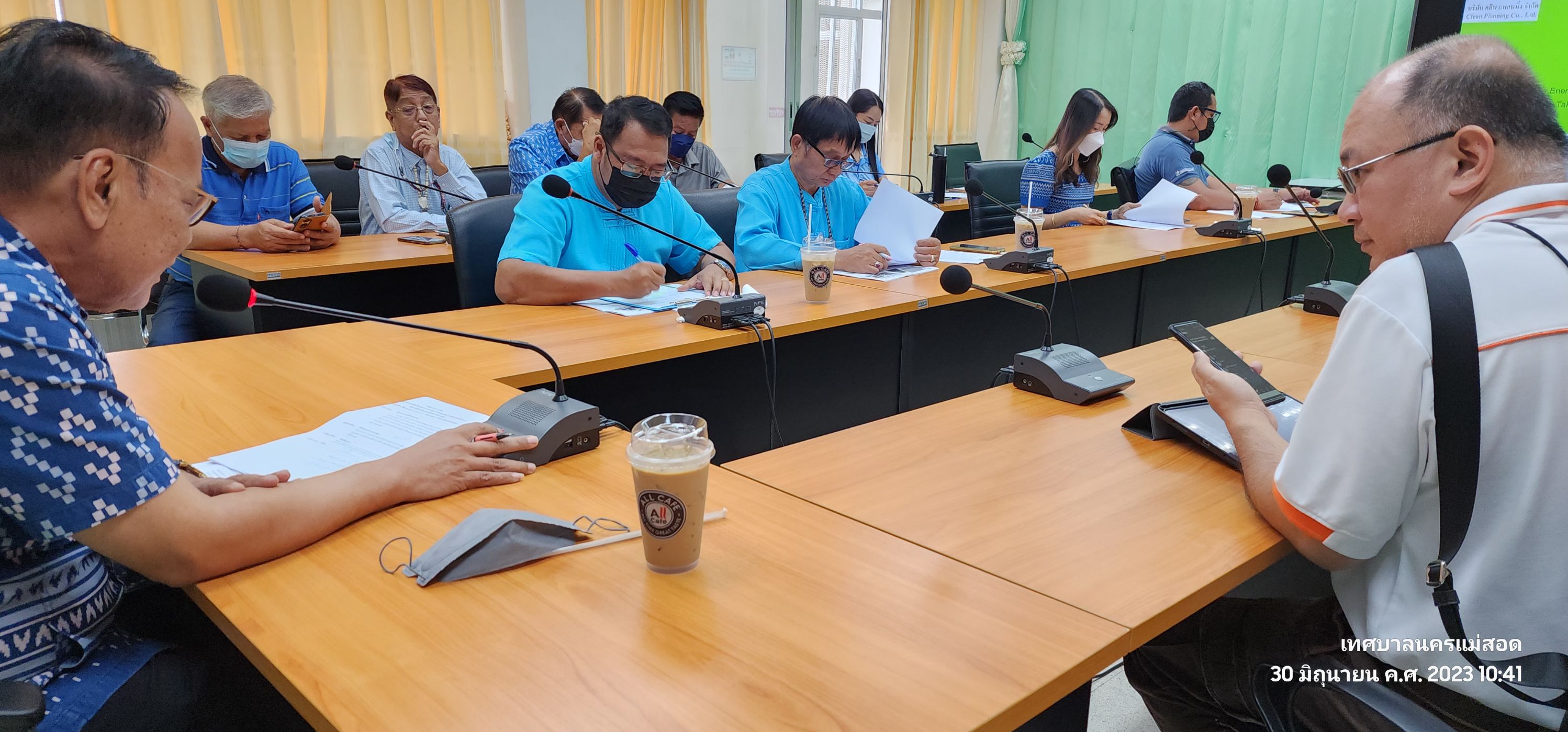 เมื่อวันศุกร์ ที่ 30 มิถุนายน 2566 เวลา 10.30 น. ณ ห้องประชุม AEC ชั้น 2 สำนักงานเทศบาลนครแม่สอด อำเภอแม่สอด จังหวัดตาก