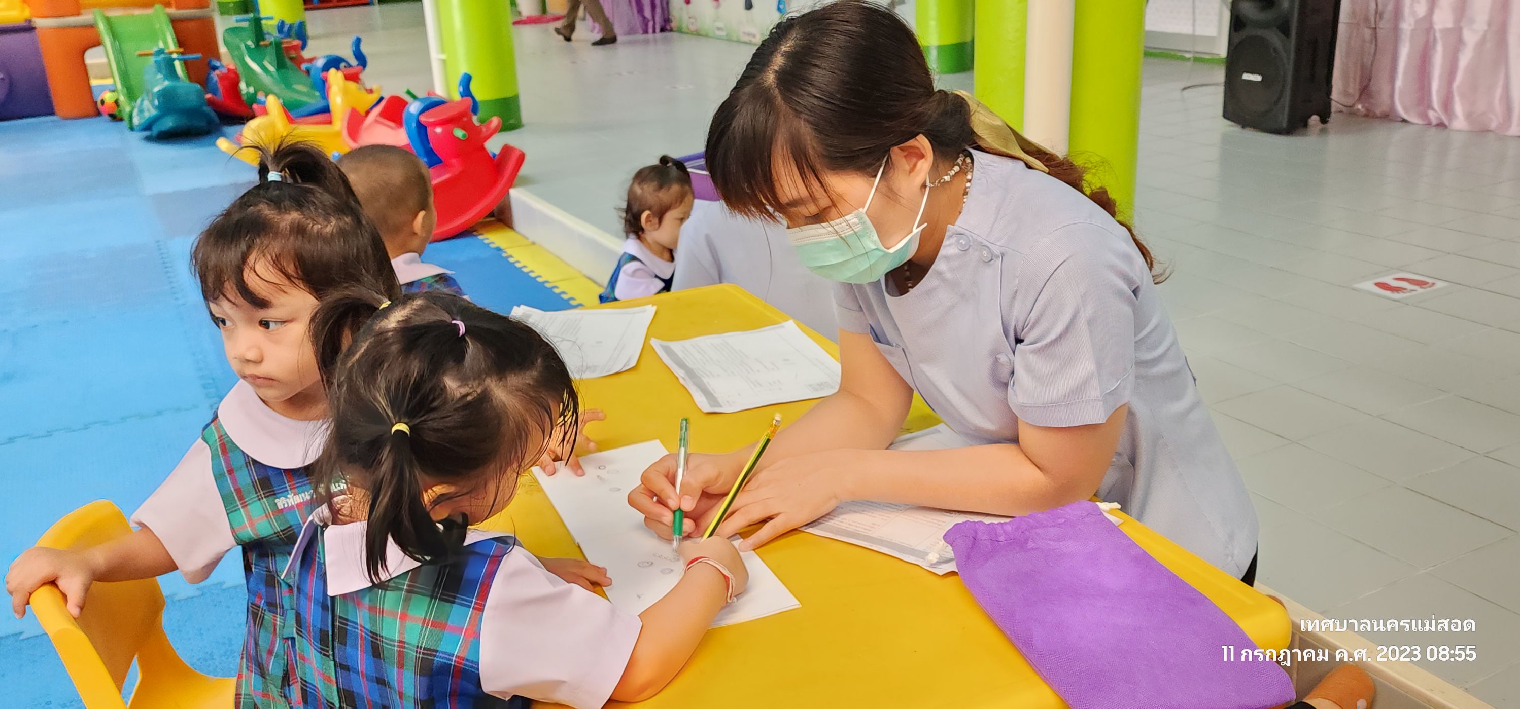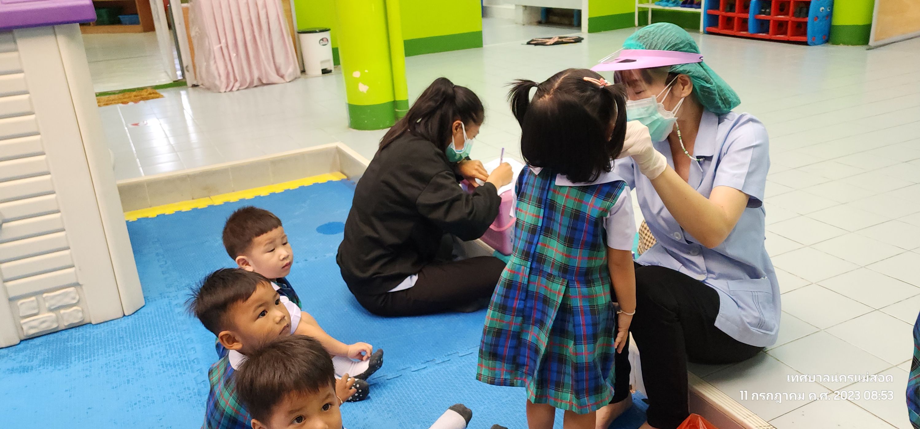 ว่าที่ร้อยตรีประเสริฐ ปวงละคร นายกเทศมนตรีนครแม่สอด พร้อมด้วยคณะผู้บริหาร สมาชิกสภาเทศบาลและเจ้าหน้าที่คลินิกชุมชนอบอุ่น เทศบาลนครแม่สอด ลงพื้นที่ให้บริการตรวจสุขภาพเบื้องต้นเด็กก่อนวัยเรียน ศูนย์พัฒนาเด็กเล็กโรงเรียนวัดมณีไพรสณฑ์ โดยมีการตรวจสุขภาพประเมินภาวะโภชนาการ ประเมินพัฒนาการและตรวจสุขภาพช่องปากให้กับเด็ก เพื่อป้องกันความเสี่ยงของโรคที่จะเกิดขึ้นในอนาคต