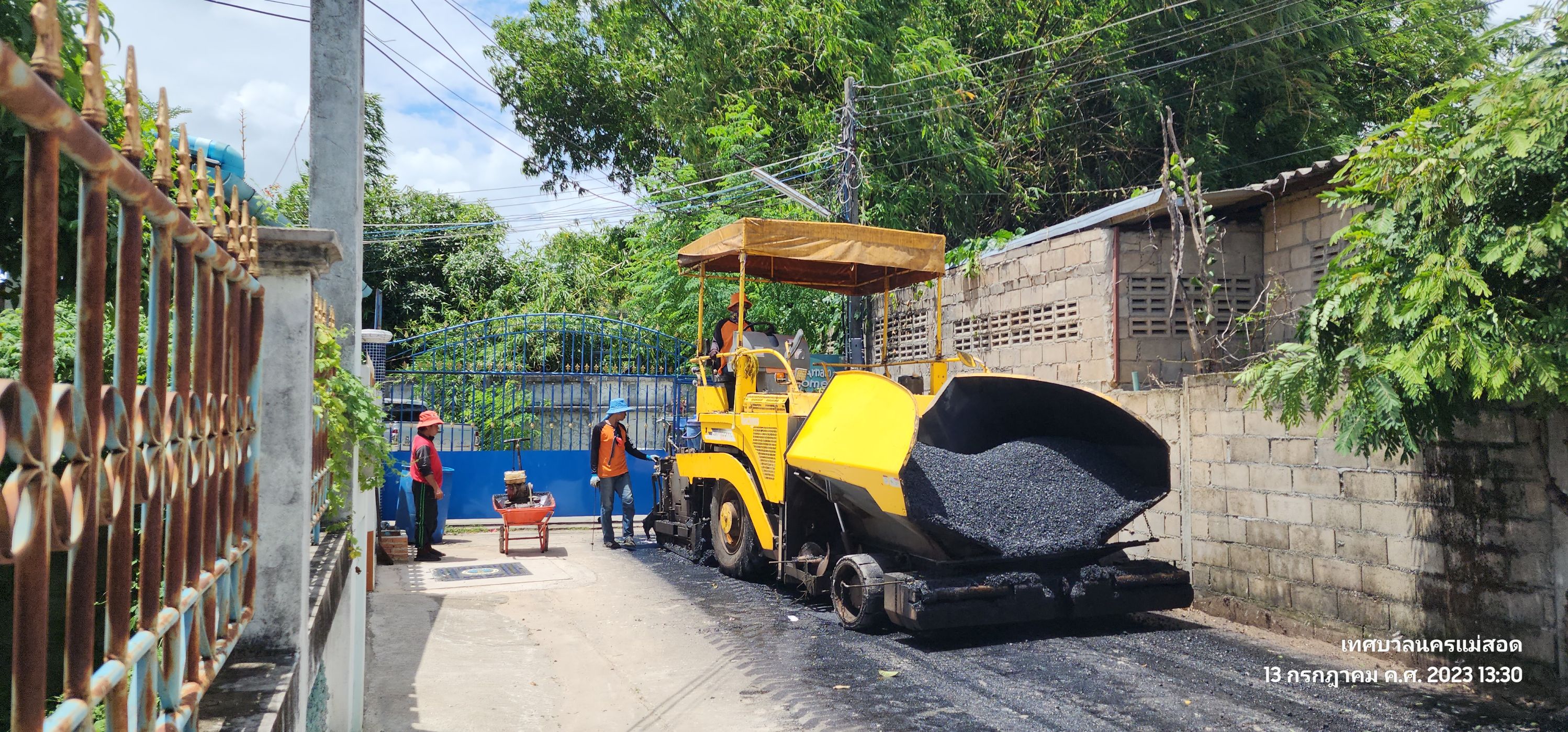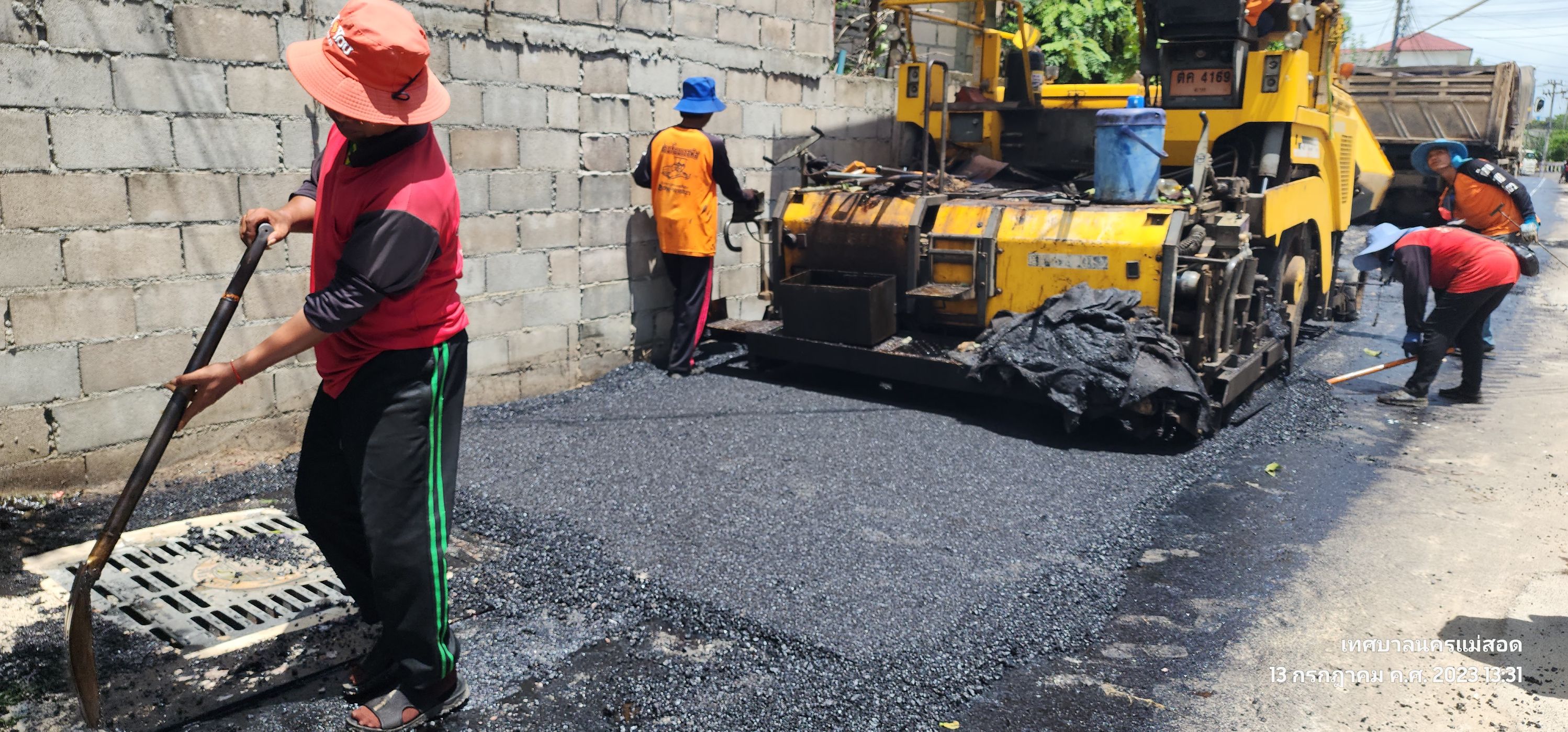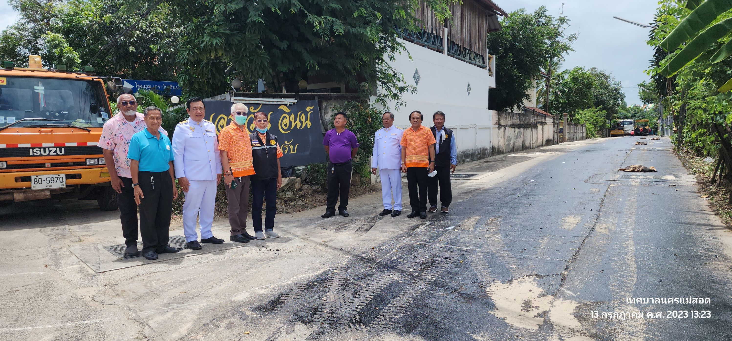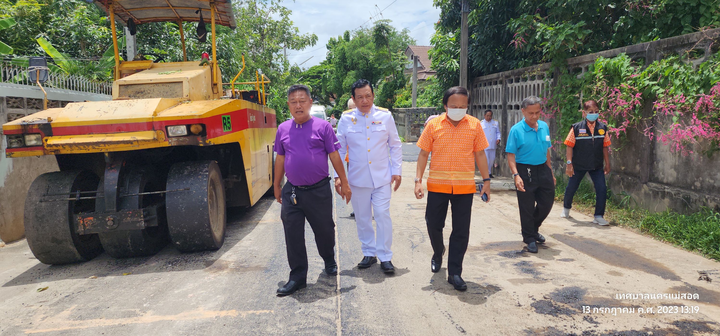 ว่าที่ร้อยตรีประเสริฐ ปวงละคร นายกเทศมนตรีนครแม่สอด พร้อมด้วยคณะผู้บริหาร สมาชิกสภาเทศบาล หัวหน้าส่วนราชการและเจ้าหน้าที่ที่เกี่ยวข้องเทศบาลนครแม่สอด ลงพื้นที่ติดตามเรียบร้อยการก่อสร้างปรับปรุงเสริมผิวจราจรลาดยางแอสฟัลท์ติ บริเวณซอยโรงแรมเอราวัณ ชุมชนสักทอง เพื่อให้การก่อสร้างเป็นไปด้วยความเรียบร้อยและดำเนินงานให้แล้วเสร็จตามระยะเวลาที่กำหนด