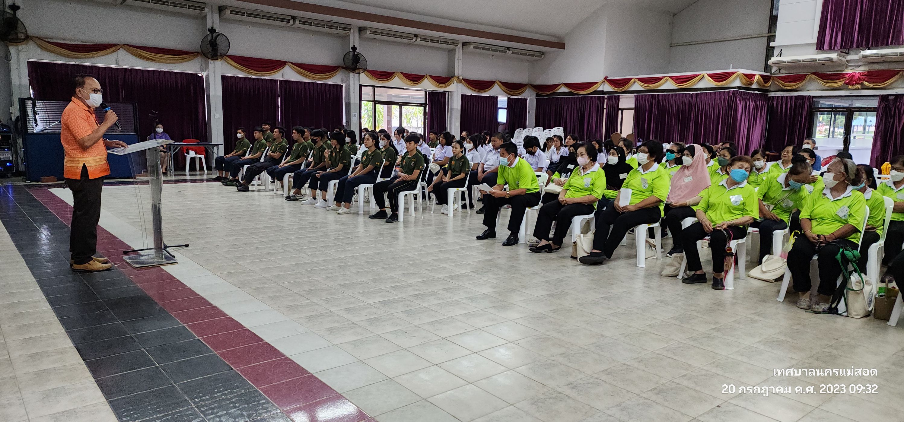 ว่าที่ร้อยตรีประเสริฐ ปวงละคร นายกเทศมนตรีนครแม่สอด มอบหมายให้นายไกรสร กิจการ รองนายกเทศมนตรีนครแม่สอด พร้อมด้วยคณะผู้บริหาร หัวหน้าส่วนราชการและเจ้าหน้าที่กองสวัสดิการสังคมเทศบาลนครแม่สอด นำนักเรียนผู้สูงอายุวิทยาลัยสูงวัยนครแม่สอด เข้าร่วมกิจกรรมจิตอาสาเพื่อสังคม หัวข้อ ส่งเสริม สืบสานวัฒนธรรม ภูมิปัญญา สู่ท้องถิ่น