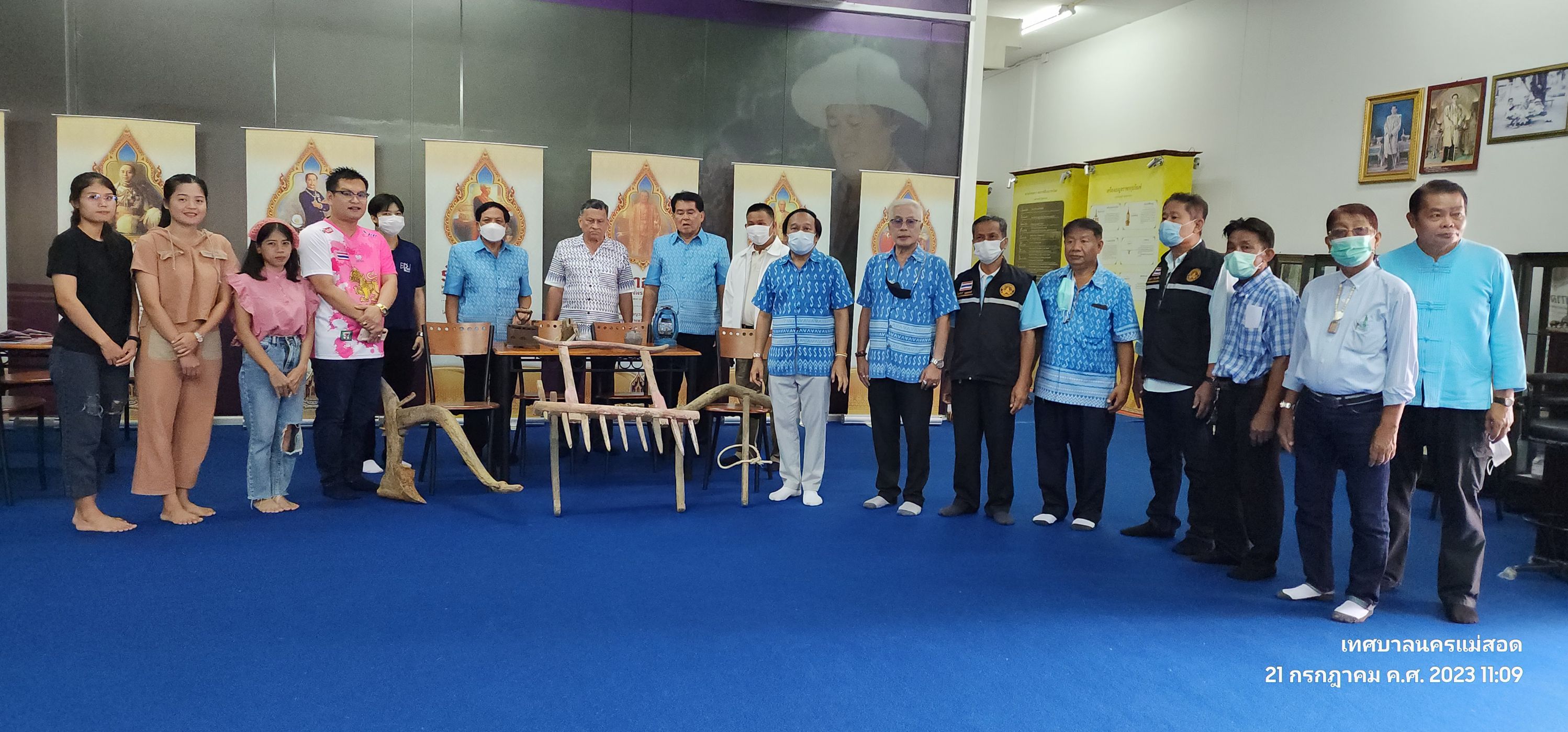ว่าที่ร้อยตรี ประเสริฐ ปวงละคร นายกเทศมนตรีนครแม่สอด พร้อมคณะผู้บริหาร สมาชิกสภาเทศบาลและเจ้าหน้าที่ที่เกี่ยวข้อง รับมอบของเก่าสมัยโบราณ จาก ดร.สุธี โนวาง ซึ่งบริจาคชุดคันไถ กาน้ำชา ตะเกียง และเตารีดถ่านเทศบาลนครแม่สอด จึงขอขอบคุณ ดร.สุธี โนวาง พร้อมครอบครัว ที่ร่วมบริจาคของเก่าสมัยโบราณ เพื่อนำมาจัดแสดงให้กับประชาชนผู้ที่สนใจและเป็นแหล่งความรู้ให้กับเด็กและเยาวชนรุ่นหลังได้ศึกษาต่อไป