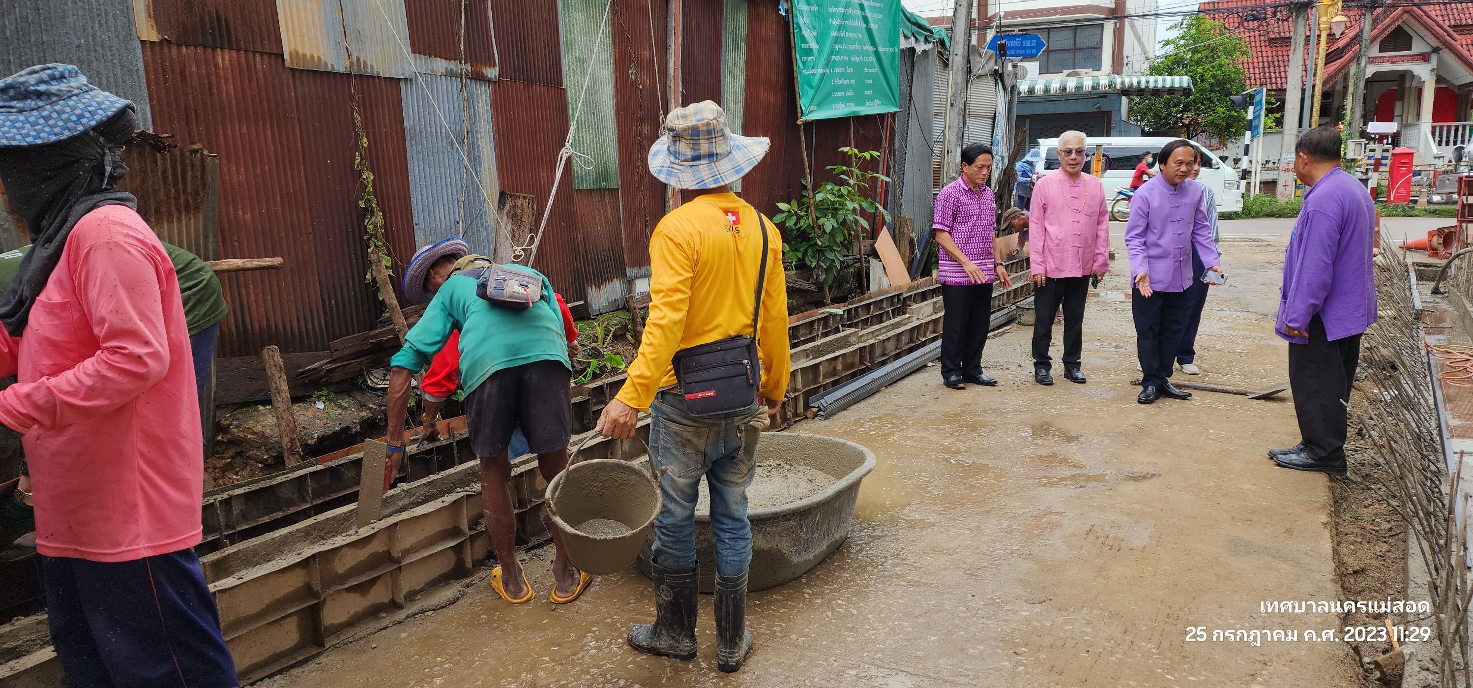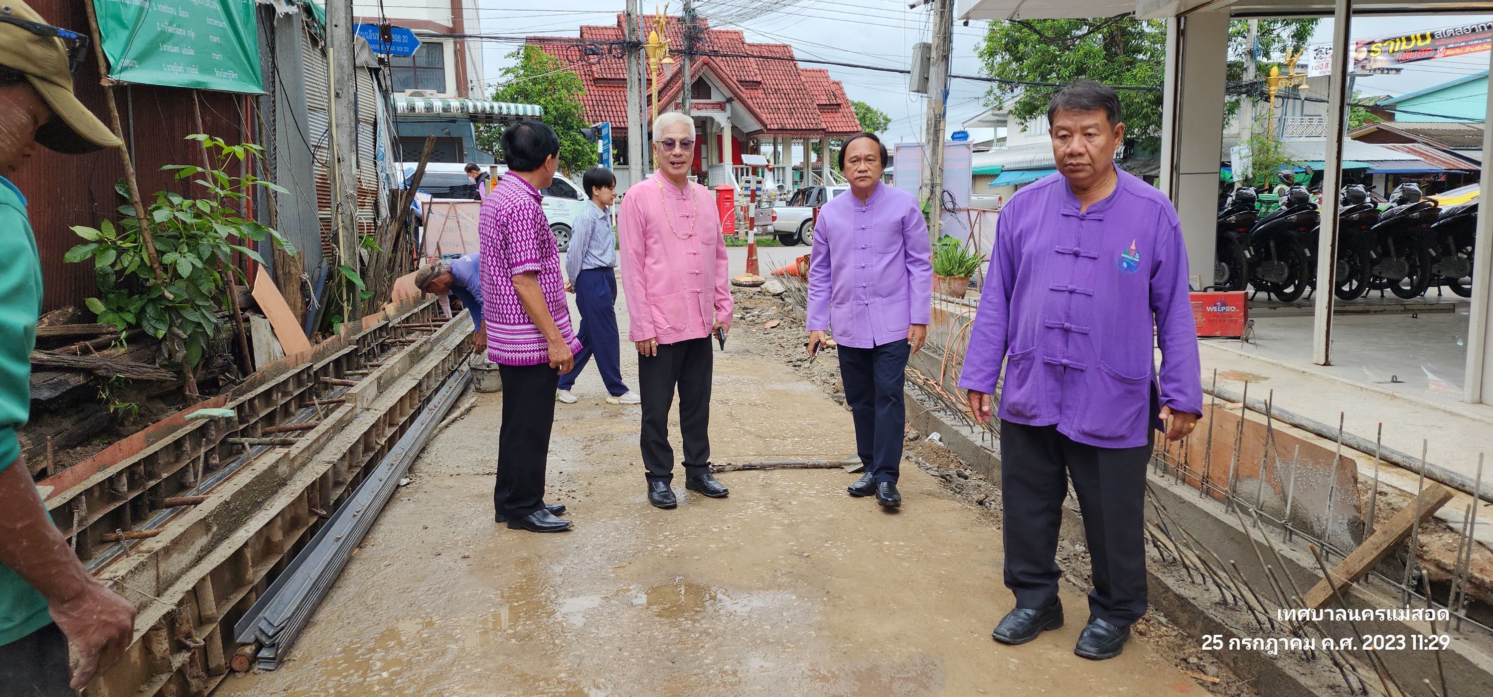 ว่าที่ร้อยตรี ประเสริฐ ปวงละคร นายกเทศมนตรีนครแม่สอด พร้อมด้วยคณะผู้บริหาร สมาชิกสภาเทศบาลและเจ้าหน้าที่ที่ข้อง ลงพื้นที่ติดตามการดำเนินงานก่อสร้างรางระบายน้ำ บริเวณถนนอินทรคีรี ซอย 22 เพื่อแก้ไขปัญหาน้ำท่วมขังและสามารถรองรับปริมาณน้ำจากบ้านเรือนประชาชน ลดปัญหาน้ำท่วมขังในเวลาที่ฝนตกชุก เพื่อประชาชนและผู้ที่สัญจรไปมา มีความสะดวกและปลอดภัย