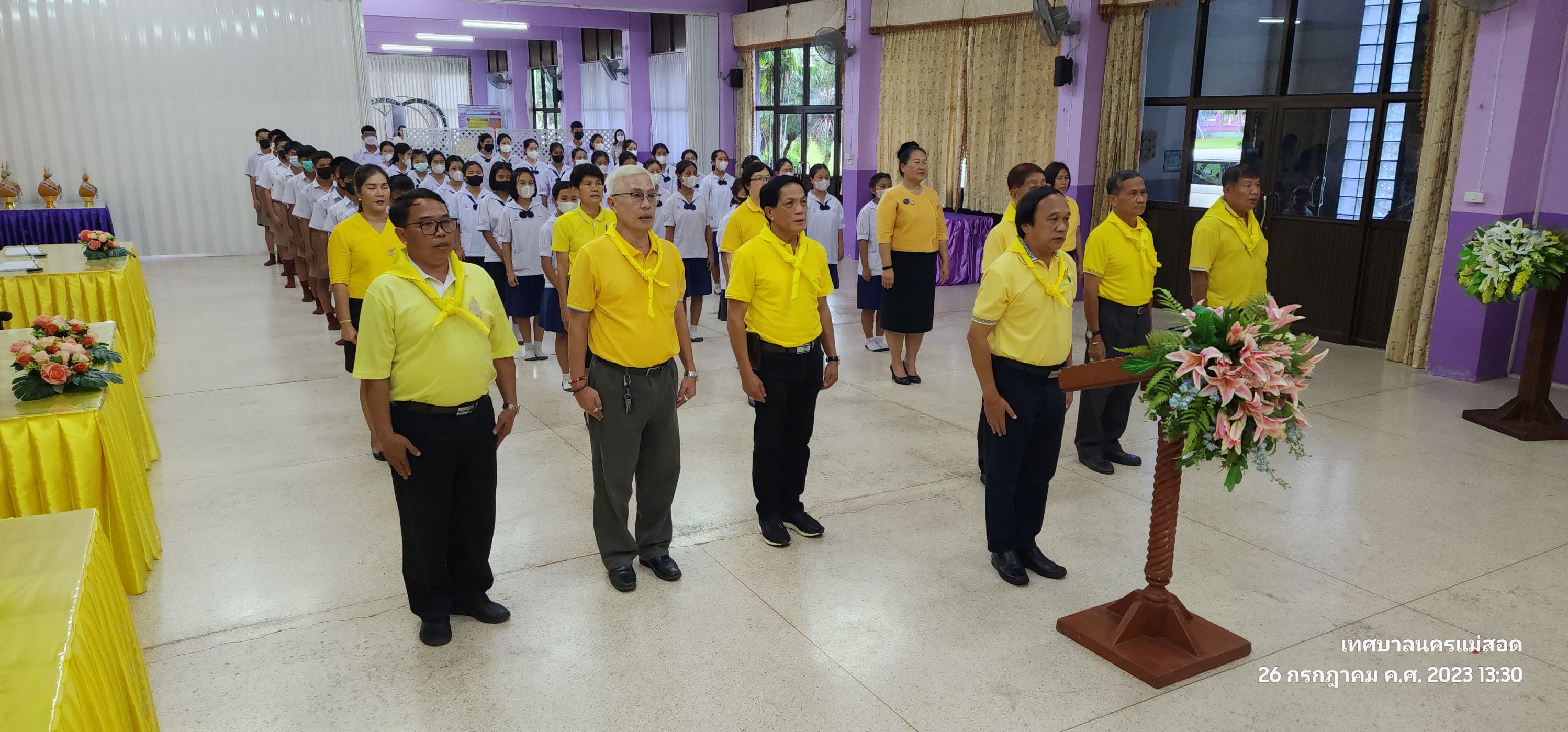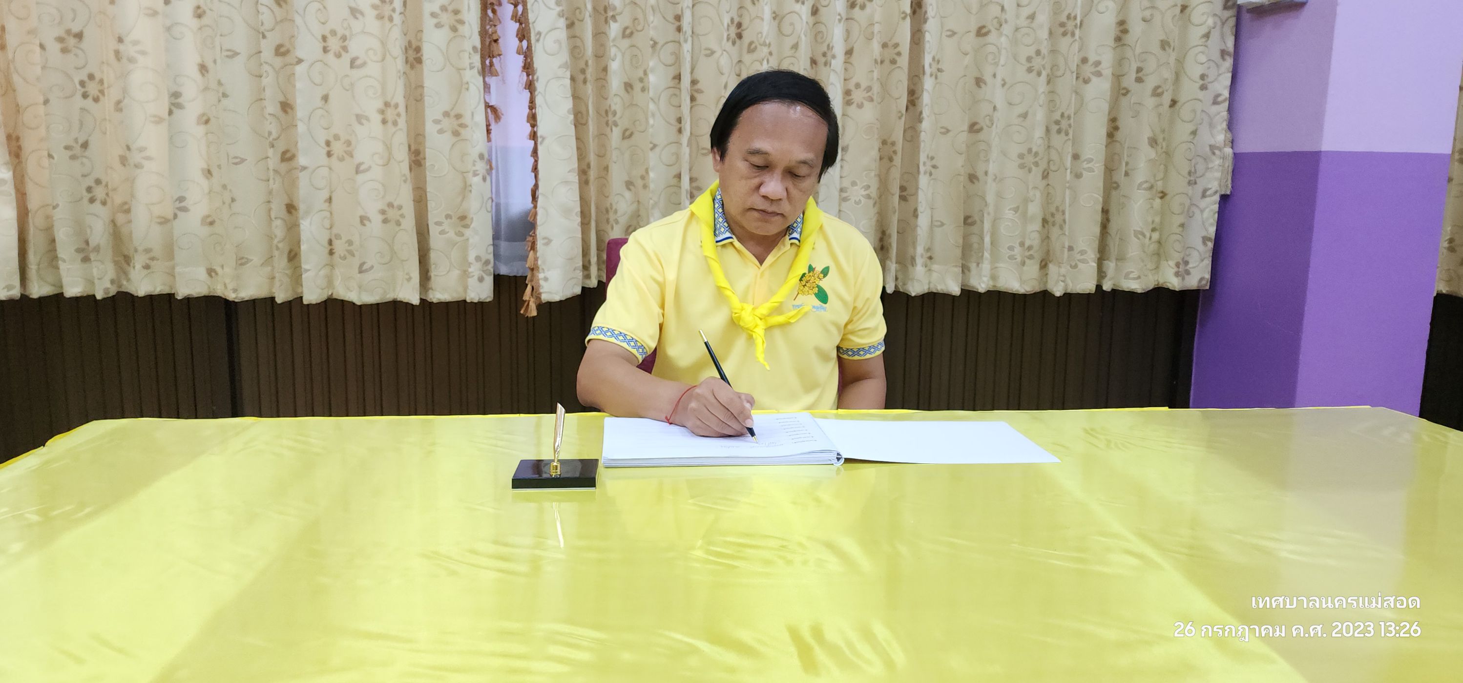 ว่าที่ร้อยตรี ประเสริฐ ปวงละคร นายกเทศมนตรีนครแม่สอด พร้อมด้วยคณะผู้บริหาร สมาชิกสภาเทศบาลนครแม่สอด ร่วมพิธีลงนามถวายพระพรชัยมงคล พระบาทสมเด็จพระเจ้าอยู่หัวเนื่องในโอกาสที่พระบาทสมเด็จพระปรเมนทรรามาธิบดีศรีสินทรมหาวชิราลงกรณ พระวชิรเกล้าเจ้าอยู่หัว ทรงเจริญพระชนมพรรษา 71 พรรษา เพื่อแสดงความจงรักภักดี โดยมีนางสาวชมพูนุช ปันทิ ผู้อำนวยการสถานศึกษาโรงเรียนเทศบาลวัดบุญญาวาส พร้อมด้วยคณะครู บุคลากรทางการศึกษา และนักเรียน เข้าร่วมพิธีลงนามฯ
