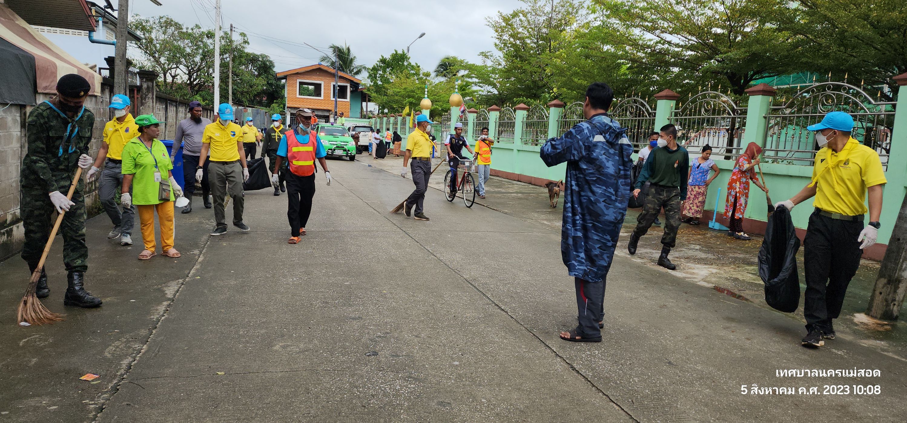 ว่าที่ร้อยตรี ประเสริฐ ปวงละคร นายกเทศมนตรีนครแม่สอด พร้อมด้วยคณะผู้บริหาร สมาชิกสภาเทศบาลนครแม่สอด เข้าร่วมกิจกรรมพัฒนาชุมชนอิสลาม โดยมีกิจกรรมการทำความสะอาด ตัดหญ้า เก็บขยะภายในชุมชน เพื่อถวายเป็นพระราชกุศลแด่สมเด็จพระนางเจ้าสิริกิติ์ พระบรมราชินีนาถ พระบรมราชชนนีพันปีหลวง เนื่องในโอกาสวันเฉลิมพระชนมพรรษา และวันแม่แห่งชาติ 12 สิงหาคม 2566