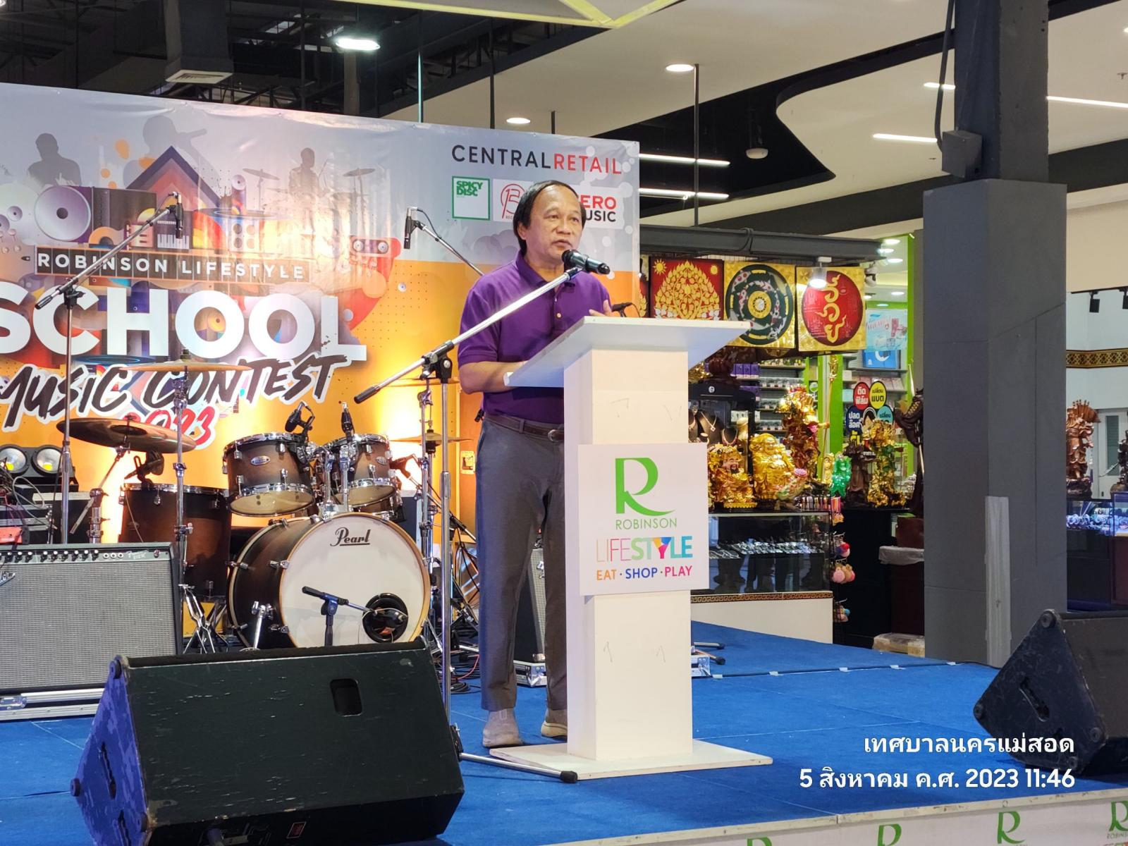 ว่าที่ร้อยตรี ประเสริฐ ปวงละคร นายกเทศมนตรีนครแม่สอด เป็นประธานเปิดการแข่งขันฯ พร้อมด้วยคณะผู้บริหารเทศบาลนครแม่สอด เข้าร่วมพิธีเปิดการแข่งขัน “ROBINSON LIFESTYLE SCHOOL MUSIC CONTEST 2023” จัดการแข่งขันโดยศูนย์การค้าโรบินสันไลฟ์สไตล์ แม่สอด ร่วมกับค่ายเพลงพันธมิตร ได้แก่ ค่ายเพลง SPICY DISC , 123Records และ TERO MUSIC