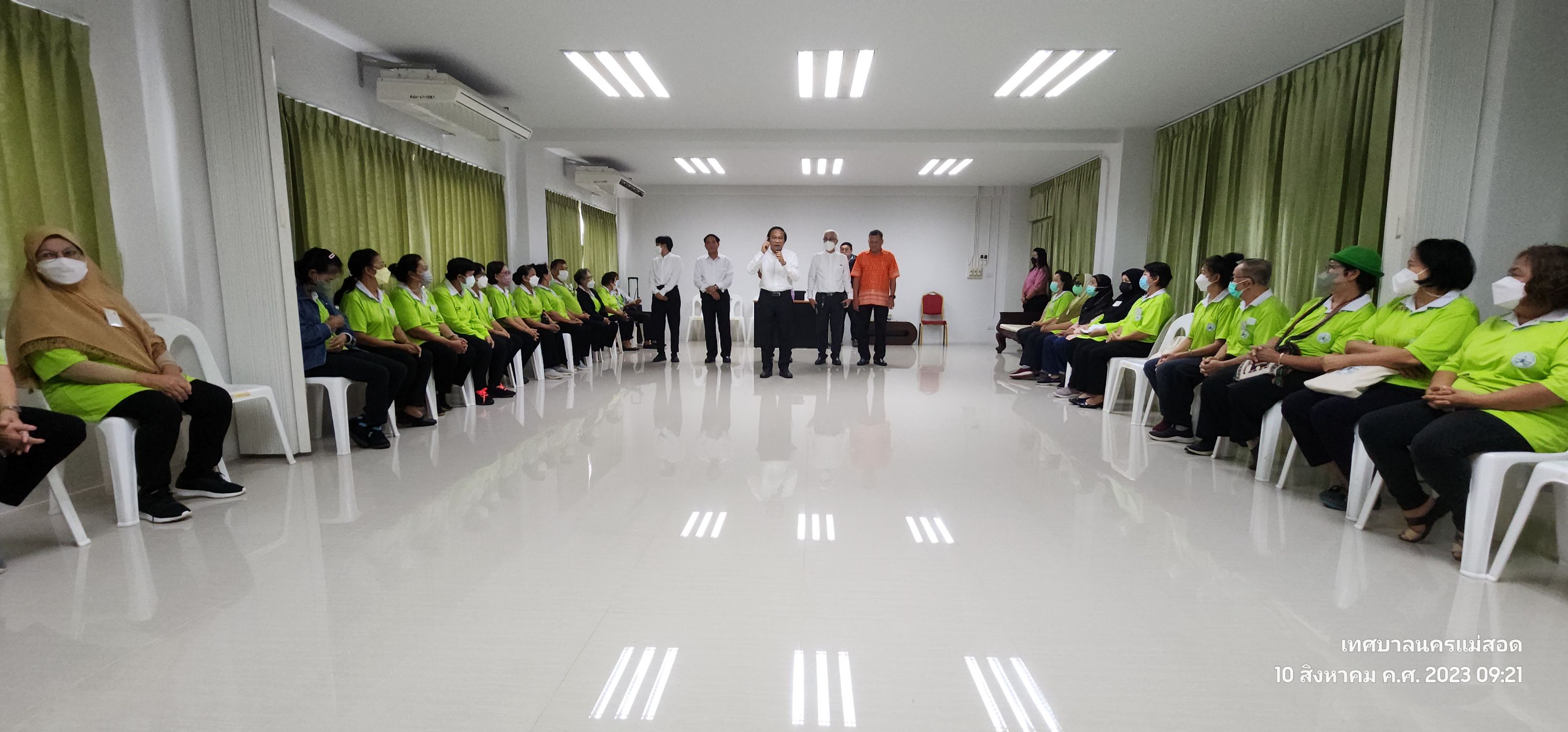 ว่าที่ร้อยตรี ประเสริฐ ปวงละคร นายกเทศมนตรีนครแม่สอด พร้อมด้วยคณะผู้บริหาร เข้าร่วมกิจกรรมพร้อมพบปะ พูดคุยกับนักเรียนวิทยาลัยสูงวัยนครแม่สอด ภายใต้โครงการส่งเสริมสุขภาพผู้สูงอายุ สร้างจิตสดใส ร่างกายแข็งแรง กิจกรรมสัปดาห์ที่ 11 โดยกองสวัสดิการสังคม วิทยาลัยสูงวัยนครแม่สอด เปิดการเรียนการสอนทุกวันพฤหัสบดี เวลา 08.30 -12.00 น.