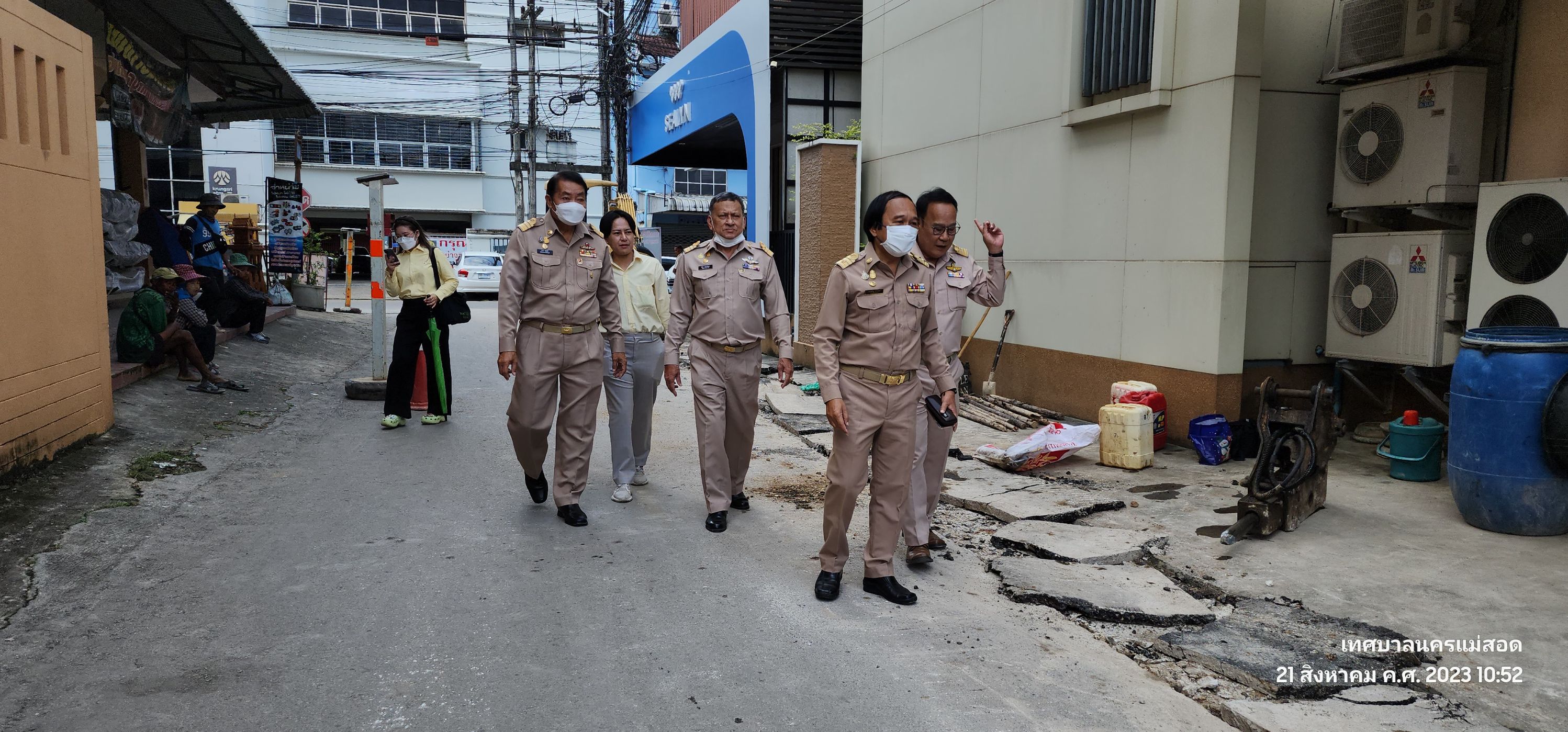 ว่าที่ร้อยตรี ประเสริฐ ปวงละคร นายกเทศมนตรีนครแม่สอด พร้อมด้วยคณะผู้บริหารเทศบาลนครแม่สอด ลงพื้นที่ติดตามความคืบหน้าโครงการก่อสร้างรางระบายน้ำรูปตัวยู บริเวณซอยร่วมใจ เพื่อให้การก่อสร้างเป็นไปด้วยความเรียบร้อยและดำเนินงานให้แล้วเสร็จตามระยะเวลาที่กำหนด เพื่อเป็นที่รองรับการระบายน้ำเสียจากบ้านเรือนของประชาชนภายในชุมชน ลดปัญหาน้ำท่วมขังและปรับไหล่ทางให้มีผิวจราจรที่กว้างและปลอดภัยสำหรับประชาชนที่ใช้ถนน