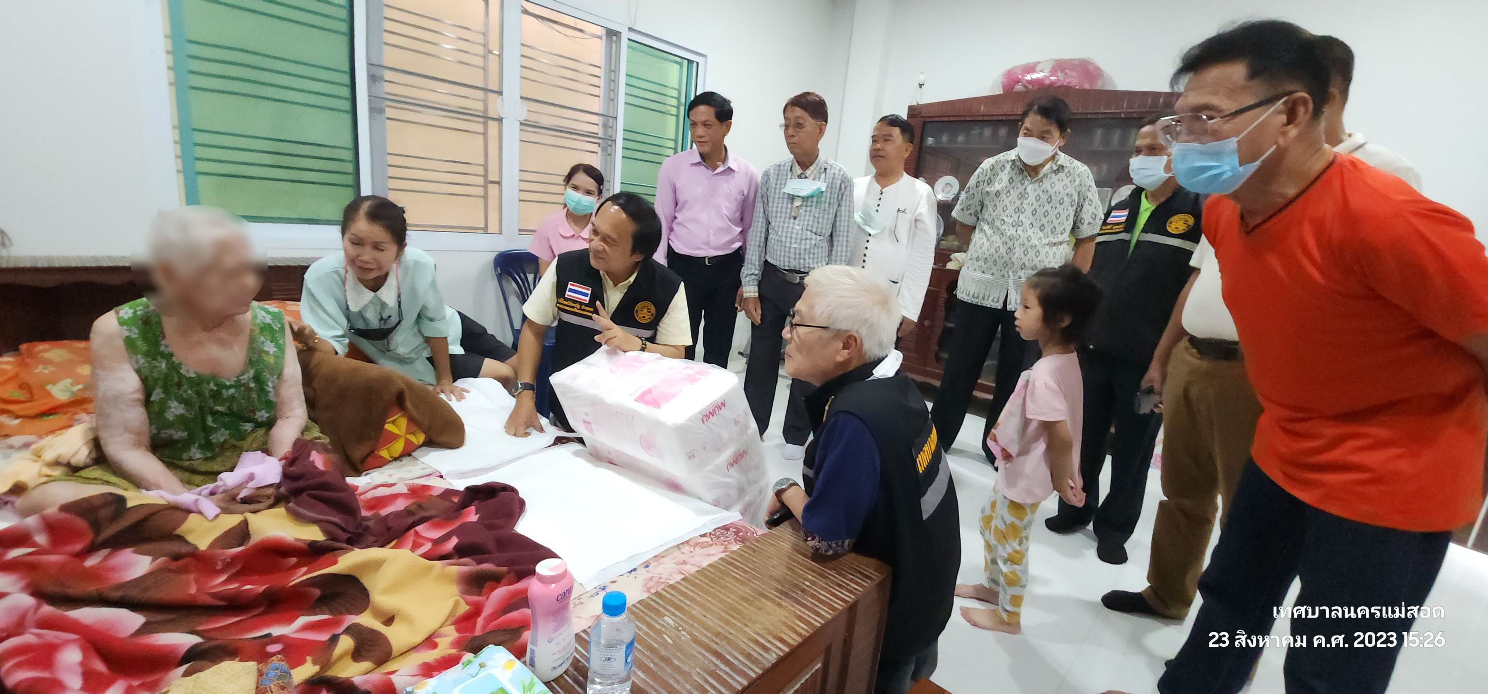 ว่าที่ร้อยตรี ประเสริฐ ปวงละคร นายกเทศมนตรีนครแม่สอด พร้อมด้วยคณะผู้บริหาร สมาชิกสภาเทศบาลและเจ้าหน้าที่คลินิกชุมชนอบอุ่น กองสาธารณสุขและสิ่งแวดล้อม เทศบาลนครแม่สอด ลงพื้นที่เยี่ยมผู้สูงอายุและผู้ป่วยติดเตียงในชุมชนตาลเดี่ยว ชุมชนมณีไพรสณฑ์ ชุมชนสันต้นปิน ชุมชนอิสลาม ชุมชนดอนไชย ชุมชนบัวคูณและชุมชนบ้านทุ่ง เขตพื้นที่เทศบาลนครแม่สอด จำนวน 8 ราย สนับสนุนโดยกองทุนหลักประกันสุขภาพระดับท้องถิ่นเทศบาลนครแม่สอด ร่วมกับนาย อัครเดช ตาสะหลี ประธานผู้บริหารบริษัท แม่สอดฟรีโซน จำกัด