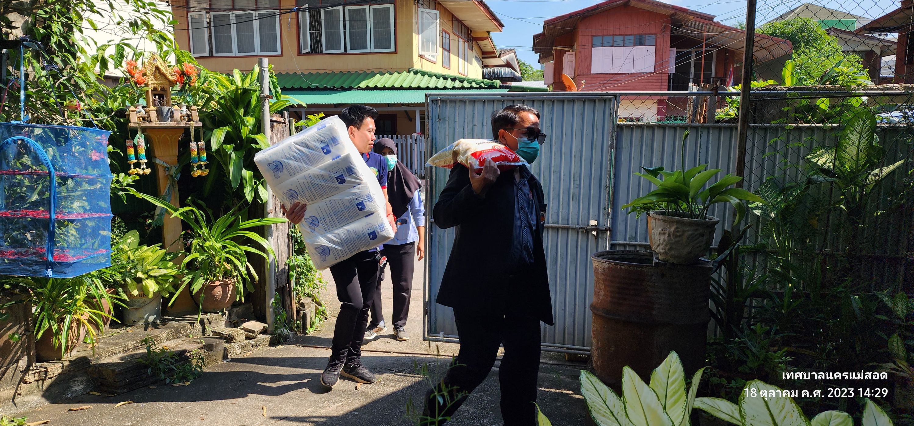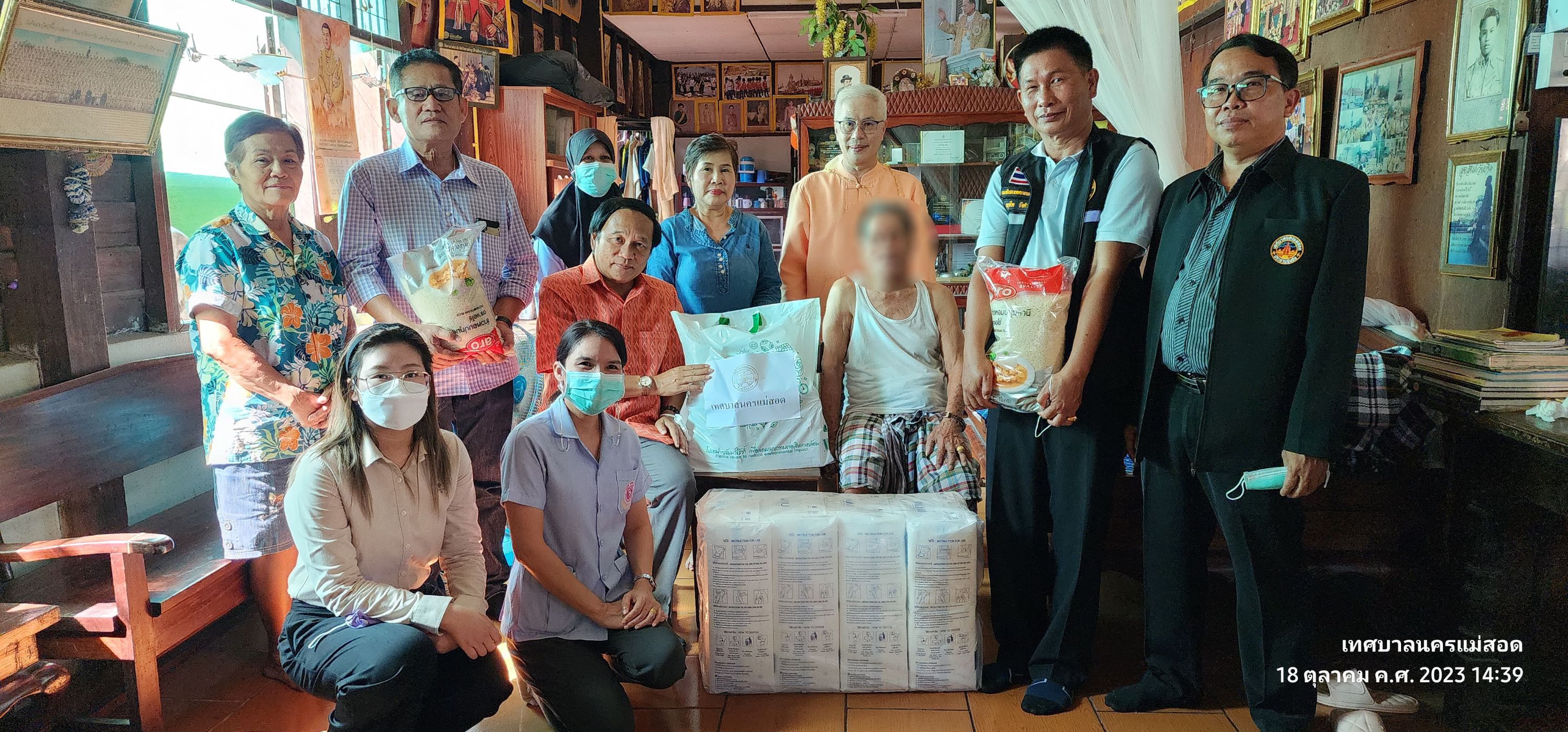 ว่าที่ร้อยตรี ประเสริฐ ปวงละคร นายกเทศมนตรีนครแม่สอด พร้อมด้วยคณะผู้บริหาร สมาชิกสภาเทศบาล และเจ้าหน้าที่คลินิกชุมชนอบอุ่น เทศบาลนครแม่สอด ลงพื้นที่มอบสิ่งของอุปโภคบริโภคให้แก่ผู้ยากไร้และผู้ป่วยติดเตียง ชุมชนบ้านทุ่ง, ชุมชนอิสลาม, ชุมชนประชารักษ์และชุมชนอินทรคีรี จำนวน 8 ราย สนับสนุนโดยกองทุนหลักประกันสุขภาพแห่งชาติ เทศบาลนครแม่สอด และนายอัครเดช ตาสะหลี ประธานผู้บริหารบริษัทแม่สอดฟรีโซน จำกัด สนับสนุนสิ่งของการลงเยี่ยมในครั้งนี้