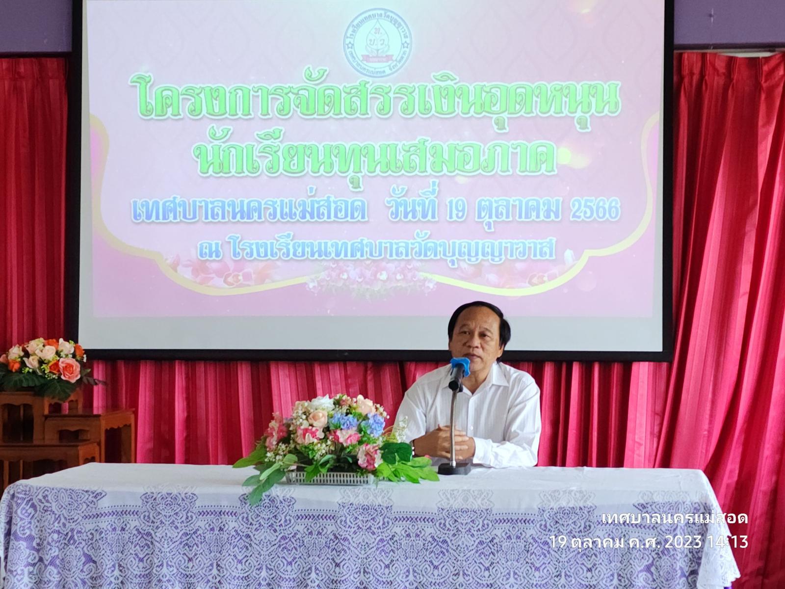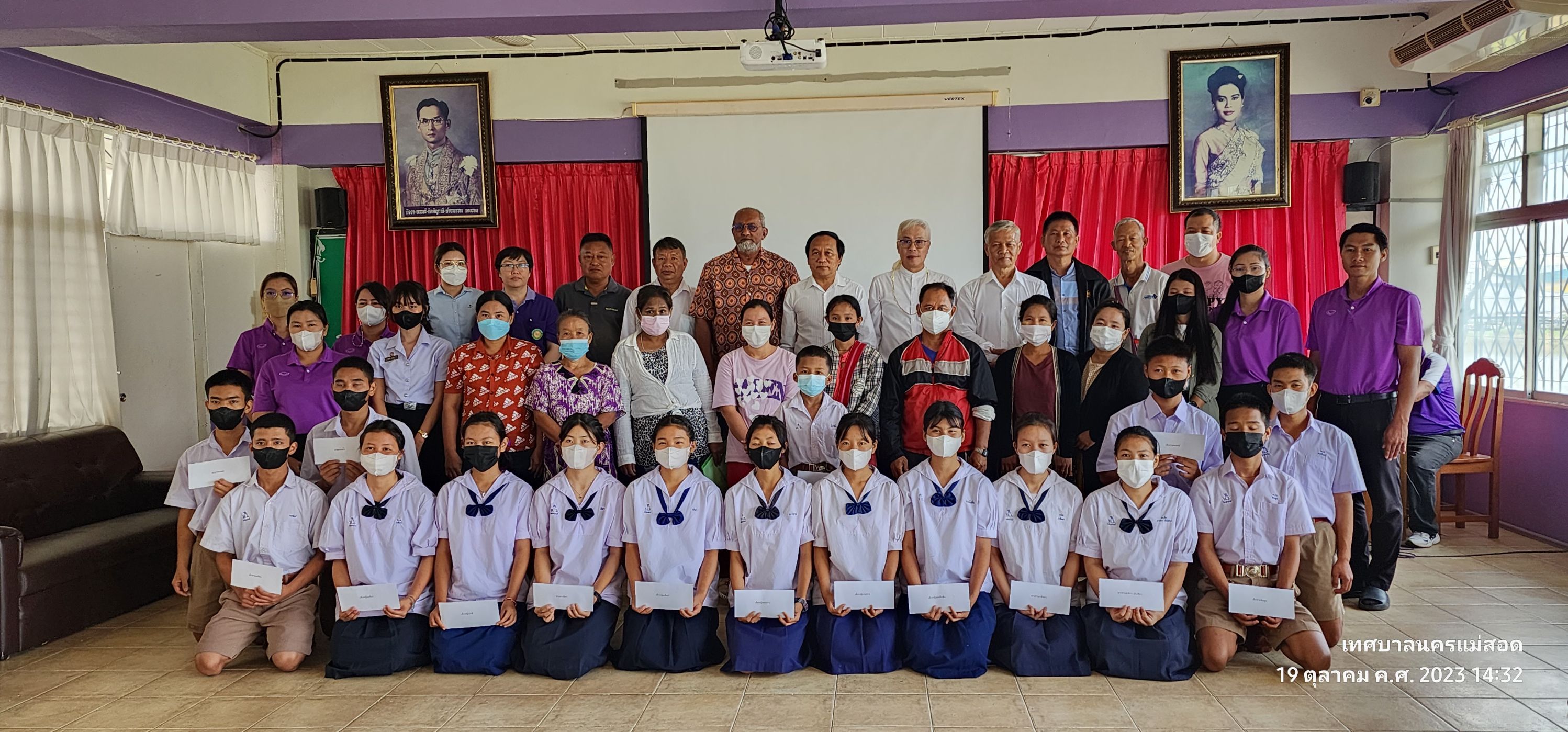 ว่าที่ร้อยตรี ประเสริฐ ปวงละคร นายกเทศมนตรีนครแม่สอด พร้อมด้วยคณะผู้บริหาร สมาชิกสภาเทศบาลนครแม่สอด ผู้อำนวยการสถานศึกษา คณะครูและผู้ปกครอง มอบทุนการศึกษาให้แก่นักเรียน จำนวน 16 ราย ตามโครงการจัดสรรเงินอุดหนุนนักเรียนทุนเสมอภาค เพื่อส่งเสริมความเสมอภาคทางการศึกษาให้นักเรียนผู้ขาดแคลนทุน ทรัพย์และด้อยโอกาสให้ได้รับโอกาสทางการศึกษา