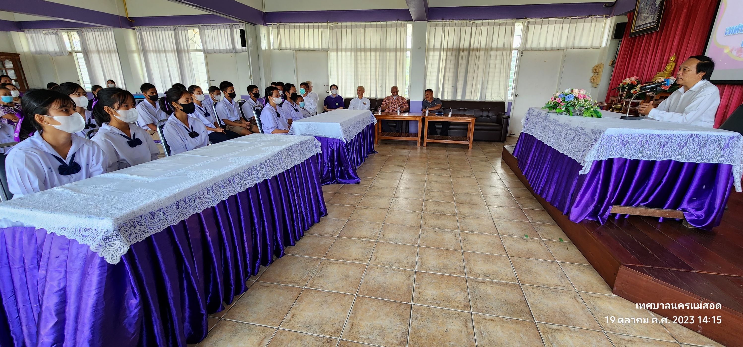 เมื่อวันพฤหัสบดี ที่ 19 ตุลาคม 2566 เวลา 14.00 น. ณ อาคารฉลองขวัญ (ชั้น 2) โรงเรียนเทศบาลวัดบุญญาวาส อำเภอแม่สอด จังหวัดตาก