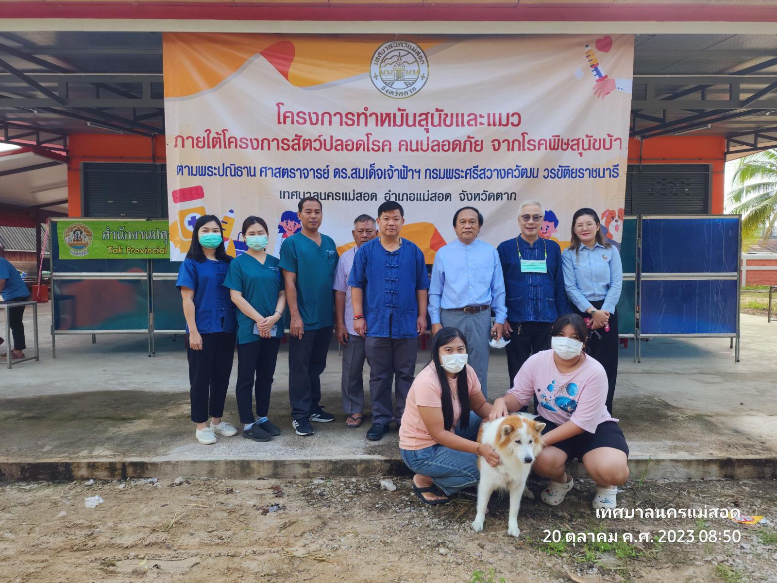 ว่าที่ร้อยตรี ประเสริฐ ปวงละคร นายกเทศมนตรีนครแม่สอด พร้อมด้วยคณะผู้บริหาร รองปลัดเทศบาล ผู้อำนวยการกอง มอบหมายให้งานสัตวแพทย์และกิจการโรงฆ่าสัตว์ กองสาธารณสุขและสิ่งแวดล้อม จัดโครงการทำหมันสุนัขและแมว ภายใต้โครงการสัตว์ปลอดโรค คนปลอดภัย จากโรคพิษสุนัขบ้า ตามพระปณิธานศาสตราจารย์ ดร.สมเด็จเจ้าฟ้าฯ กรมพระศรีสวางควัฒน วรขัติยราชนารี เทศบาลนครแม่สอด อำเภอแม่สอด จังหวัดตาก ปีงบประมาณ 2567