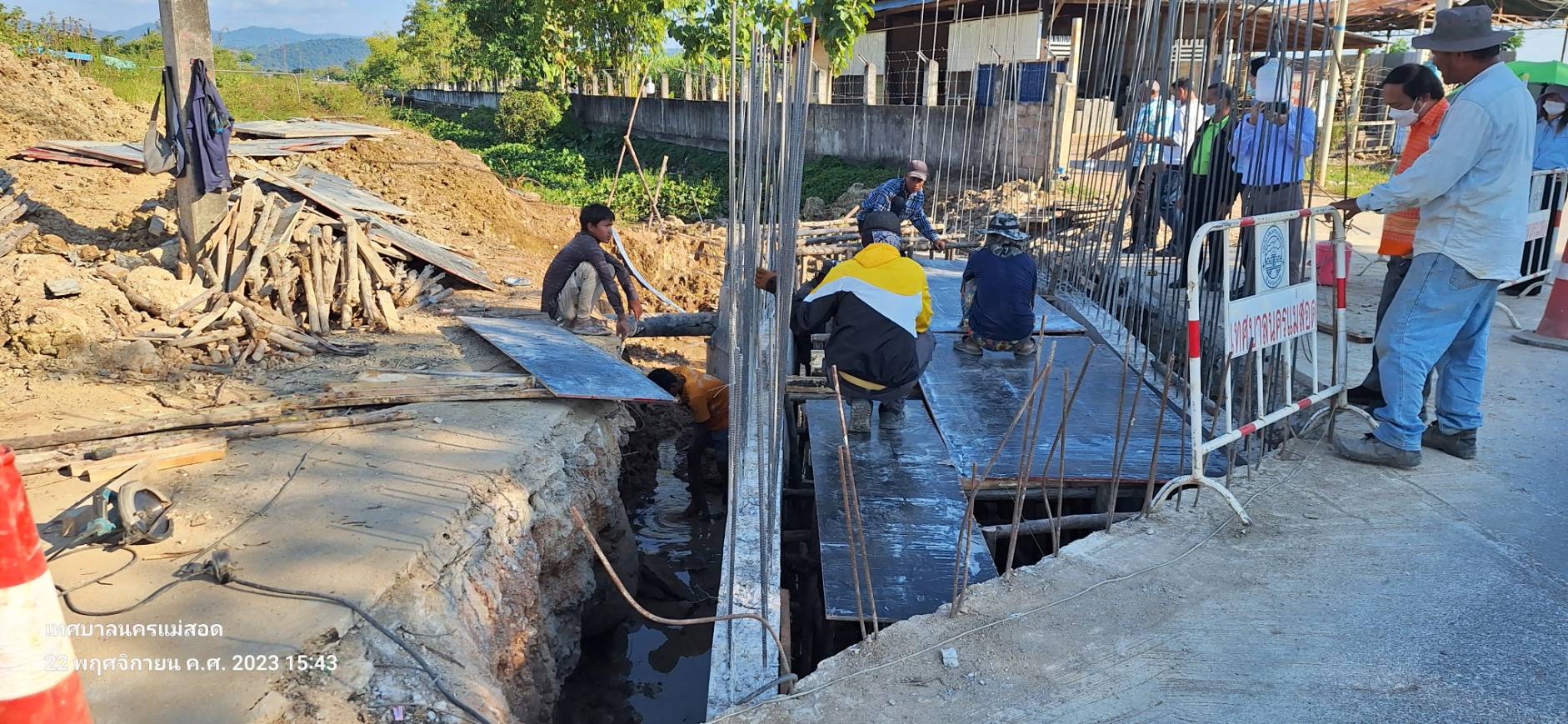 ว่าที่ร้อยตรี ประเสริฐ ปวงละคร นายกเทศมนตรีนครแม่สอด พร้อมด้วยคณะผู้บริหาร สมาชิกสภาเทศบาล และเจ้าหน้าทีที่เกี่ยวข้อง ลงพื้นที่ติดตามความคืบหน้างานก่อสร้างรางระบายน้ำ ถนนสายแม่สอด – แม่ตาว เพื่อให้การก่อสร้างเป็นไปด้วยความเรียบร้อย และเร่งรัดการดำเนินงานให้แล้วเสร็จตามระยะเวลาที่กำหนด