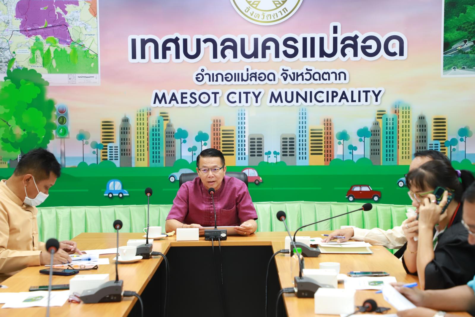 ว่าที่ร้อยตรี ประเสริฐ ปวงละคร นายกเทศมนตรีนครแม่สอด มอบหมายให้ นายไกรสร กิจการ รองนายกเทศมนตรีนครแม่สอด พร้อมด้วย นายศุภกร เบญจกัญญา ปลัดเทศบาลนครแม่สอด นายประสาน มั่นมาก รองปลัด เทศบาลนครแม่สอด ท้องถิ่นอำเภอแม่สอด ผู้อำนวยการกองและเจ้าหน้าที่ที่เกี่ยวข้อง เข้าร่วมการประชุมฯ