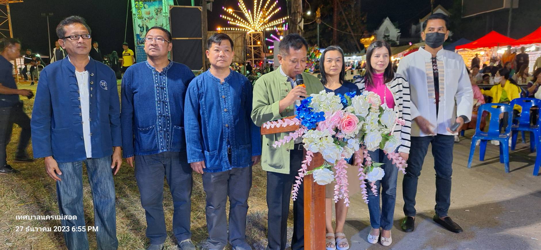 โดยมี นายศุภกร เบญจกัญญา ปลัดเทศบาลนครแม่สอด กล่าวรายงานถึงวัตถุประสงค์ของการจัดงานในครั้งนี้ เพื่อส่งเสริมการท่องเที่ยวและกระตุ้นเศรษฐกิจการใช้จ่าย กระจายรายได้สู่ท้องถิ่น ทั้งในเขตเทศบาลนครแม่สอดและพื้นที่ใกล้เคียง โดยภายในงานมีร้านอาหาร และร้านจำหน่ายสินค้าผลิตภัณฑ์ชุมชน รวมถึงมีการแสดงของนักเรียนโรงเรียนในสังกัดเทศบาลนครแม่สอด ซึ่งจัดขึ้นระหว่างวันที่ 27–29 ธันวาคม 2566 ตั้งแต่เวลา 18.00 – 20.00 น. ณ บริเวณตลาดไนท์บาร์ซ่านครแม่สอด