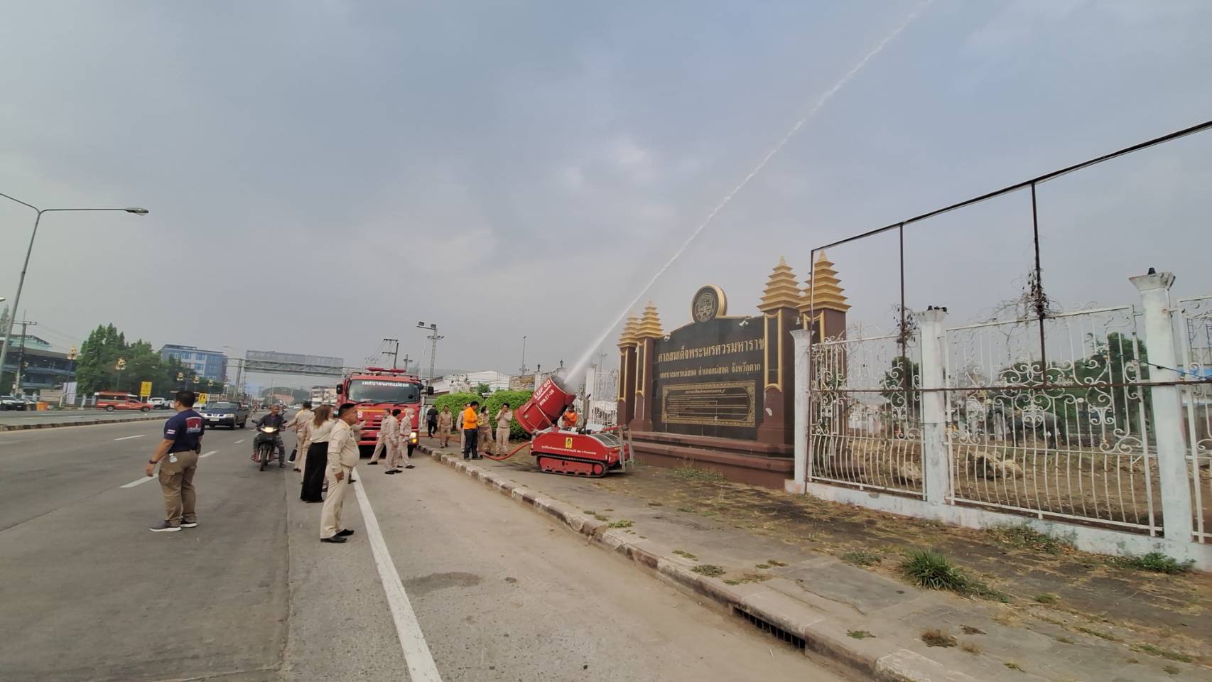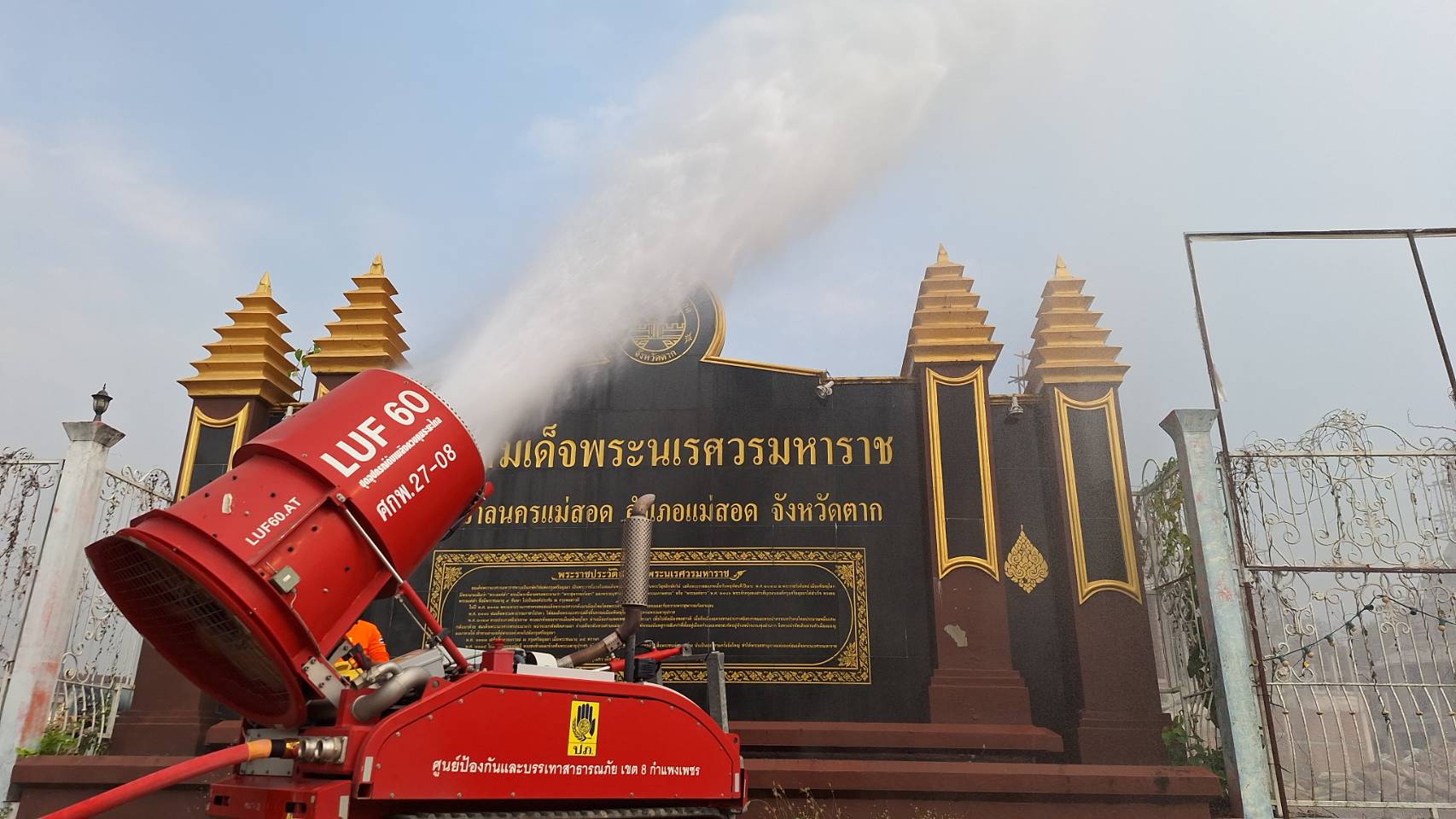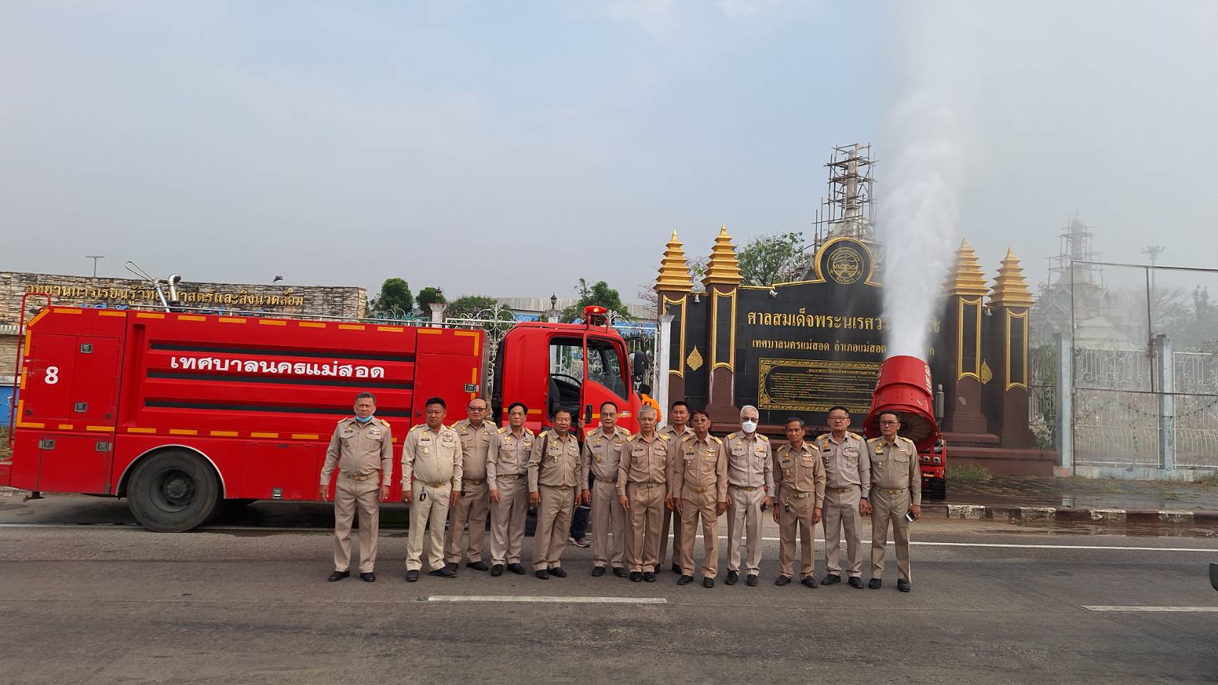 ว่าที่ร้อยตรี ประเสริฐ ปวงละคร นายกเทศมนตรี นครแม่สอด พร้อมด้วยคณะผู้บริหาร สมาชิกสภาเทศบาล พนักงาน และเจ้าหน้าที่ฝ่ายป้องกันและบรรเทาสาธารณภัยเทศบาลนครแม่สอด ร่วมกับศูนย์ป้องกันและบรรเทาสาธารณภัย เขต 8 กำแพงเพชร ดำเนินการฉีดพ่นละอองน้ำเพื่อลดปริมาณ ฝุ่นละออง PM 2.5 และเพิ่มความชื้นในอากาศ เพื่อแก้ไขปัญหาฝุ่นละอองขนาดเล็กในพื้นที่อำเภอแม่สอด