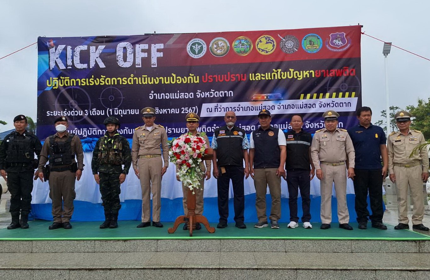 โดยมี นายสัญญา เพชรเศษ นายอำเภอแม่สอด เป็นประธานในพิธีเปิดกิจกรรม Kick off ปล่อยแถวกำลังพลกวาดล้างยาเสพติดฯ โดยมีหัวหน้าส่วนราชการ ผู้นำท้องที่ผู้นำท้องถิ่นและหน่วยงานที่เกี่ยวข้องเข้าร่วมกิจกรรมฯ