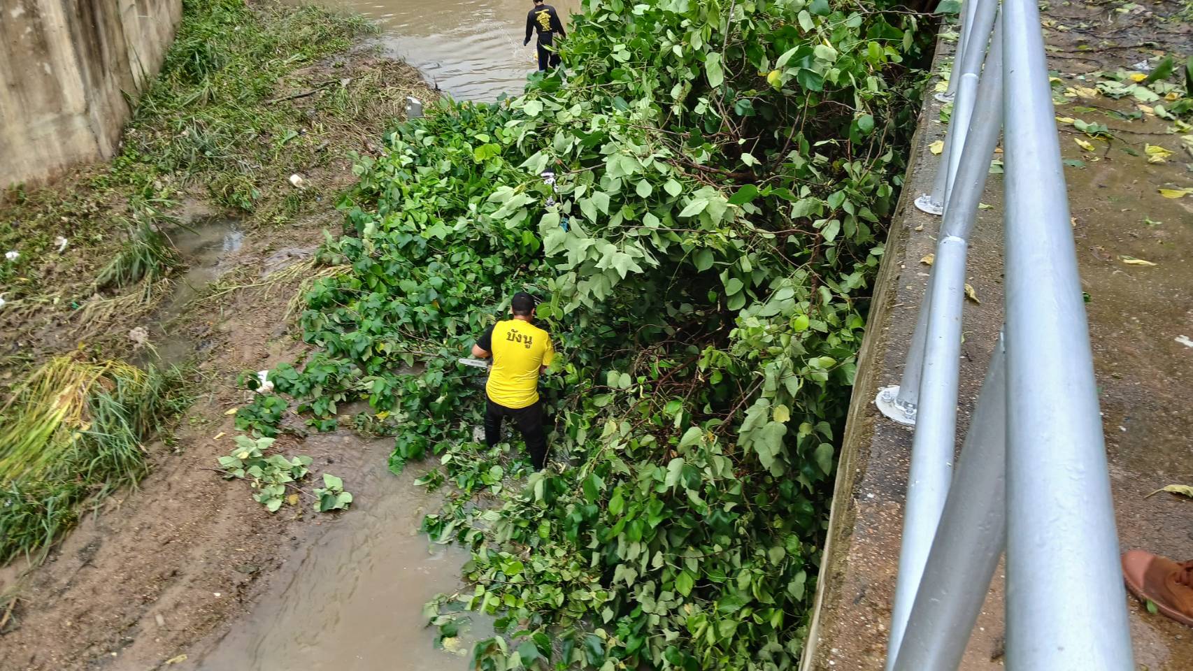 ว่าที่ร้อยตรี ประเสริฐ ปวงละคร นายกเทศมนตรีนครแม่สอด พร้อมด้วย คณะผู้บริหาร และเจ้าหน้าที่ฝ่ายป้องกันและบรรเทาสาธารณภัย ลงพื้นที่ดำเนินการ ตัด ทอน กิ่งไม้ที่หักโค่นลงมากีดขวางทางน้ำ เพื่อให้น้ำในลำเหมืองระบายได้อย่างสะดวก และป้องกันปัญหาน้ำท่วมในฤดูฝน