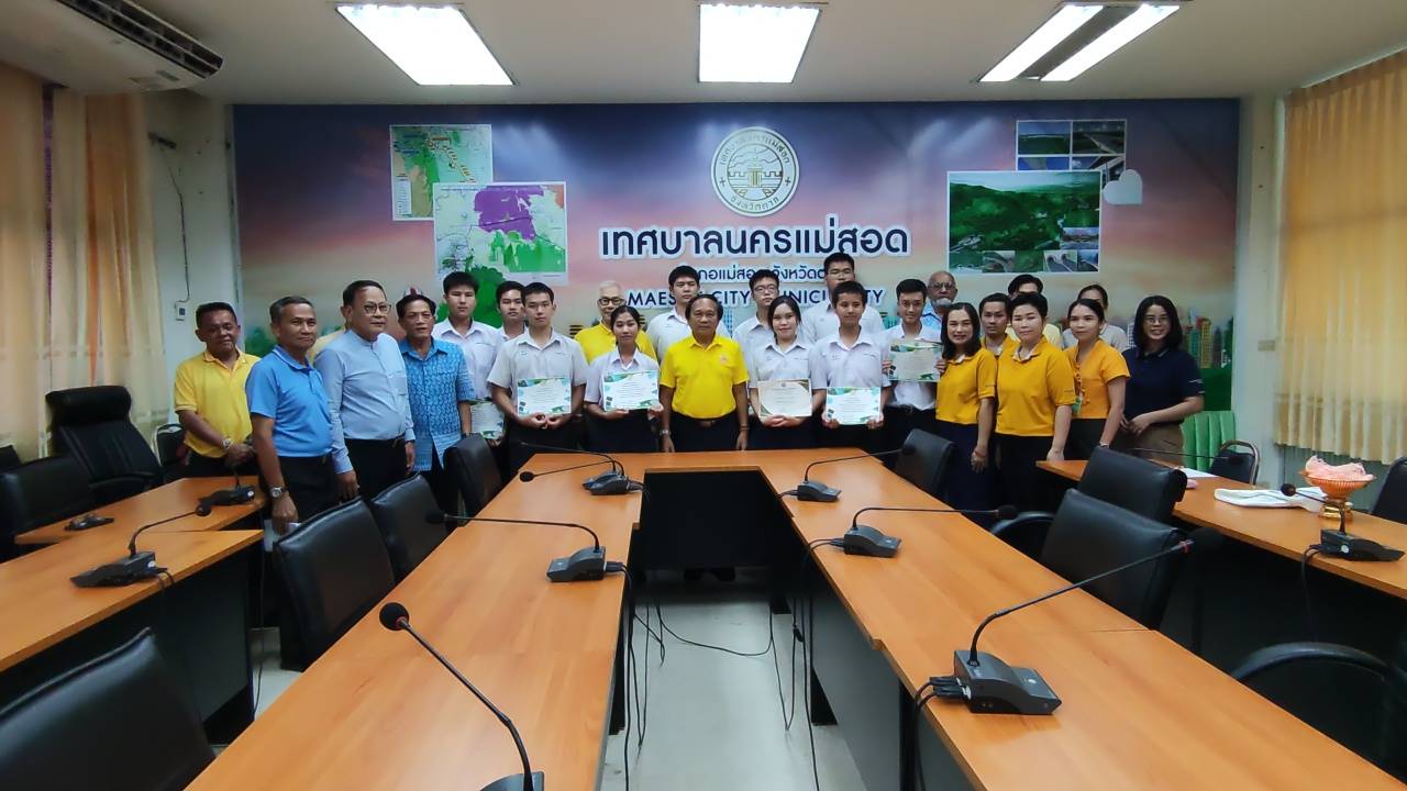 ว่าที่ร้อยตรี ประเสริฐ ปวงละคร นายกเทศมนตรีนครแม่สอด พร้อมด้วย คณะผู้บริหาร สมาชิกสภาเทศบาล เจ้าหน้าที่คลินิกชุมชนอบอุ่นเทศบาลนครแม่สอด และคณะครู เข้าร่วมพิธีมอบใบประกาศเกียรติบัตร ผู้ผ่านการฝึกประสบการณ์ด้านการแพทย์และสาธารณสุข คลินิกชุมชนอบอุ่นเทศบาลนครแม่สอด แก่นักเรียนระดับชั้นมัธยมศึกษาปีที่ 5 ห้องเรียนวิทยาศาสตร์ คณิตศาสตร์เข้มข้น โรงเรียนสรรพวิทยาคม จำนวน 10 ราย เพื่อส่งเสริมทักษะชีวิต และทักษะการทำงานร่วมกับผู้อื่น รวมถึงการสร้างเจตคติที่ดีต่อกลุ่มงานวิทยาศาสตร์ – สุขภาพ ระหว่างวันที่ 30 กันยายน 2567 ถึงวันที่ 11 ตุลาคม 2567 ณ คลินิกชุมชนอบอุ่น เทศบาลนครแม่สอด อำเภอแม่สอด จังหวัดตาก