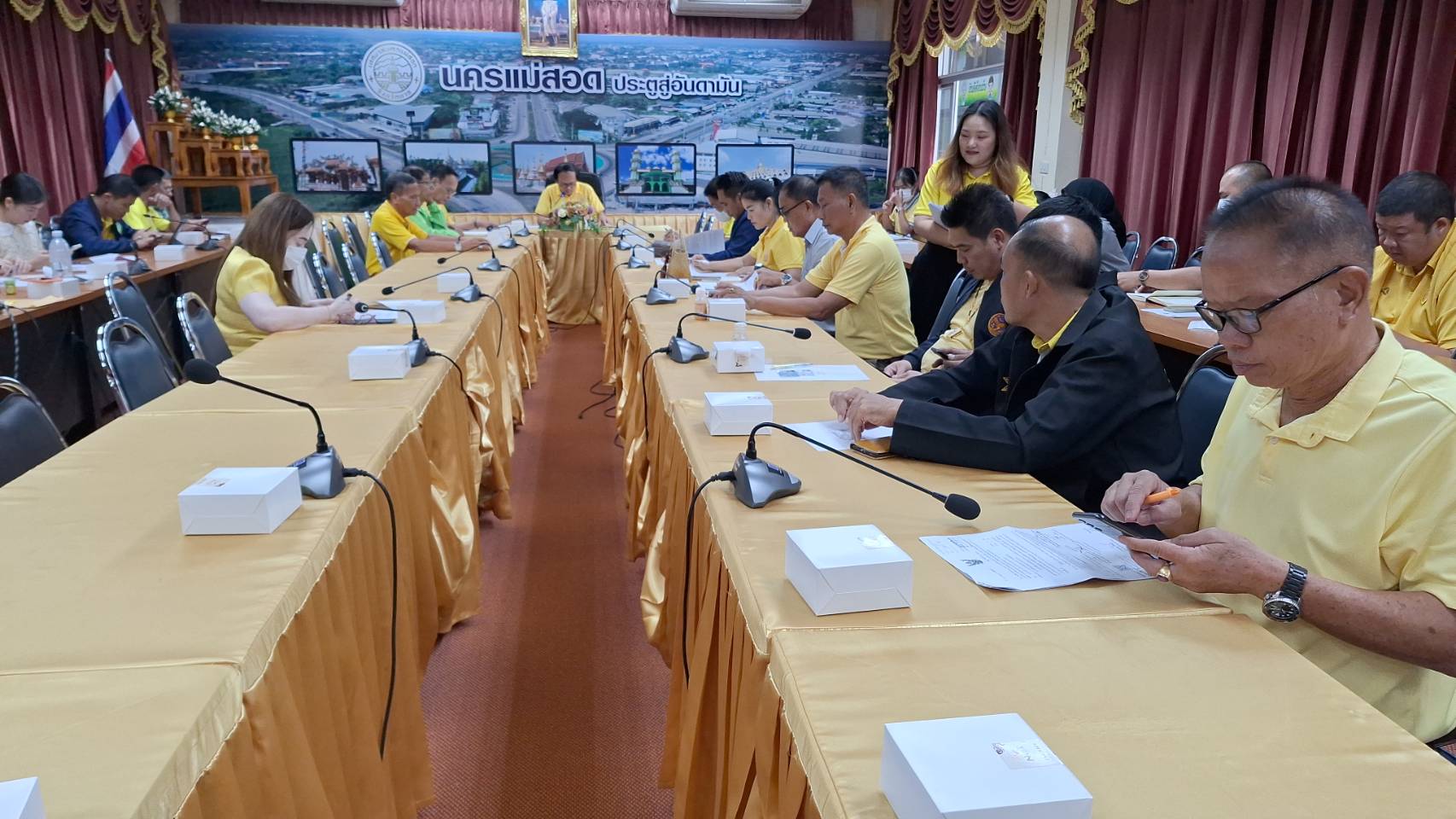 เมื่อ วันจันทร์ ที่ 18 พฤศจิกายน 2567 เวลา 10.00 น. ณ ห้องประชุมโกเมน (ชั้น 3) อาคารสำนักงานเทศบาลนครแม่สอด อำเภอแม่สอด จังหวัดตาก ว่าที่ร้อยตรี ประเสริฐ ปวงละคร นายกเทศมนตรีนครแม่สอด เป็นประธานการประชุมฯ พร้อมด้วย คณะผู้บริหาร สมาชิกสภาเทศบาล คณะกรรมการฯ และเจ้าหน้าที่ ที่เกี่ยวข้อง