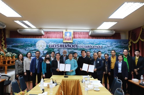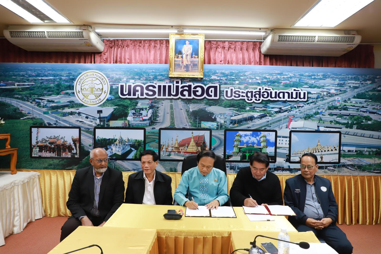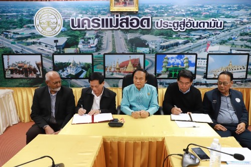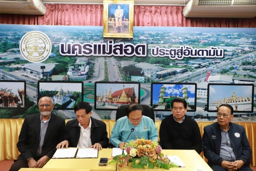 ว่าที่ร้อยตรี ประเสริฐ ปวงละคร นายกเทศมนตรีนครแม่สอด เป็นประธานฯ พร้อมด้วย คณะผู้บริหาร รองปลัดเทศบาล ผู้อำนวยการกอง ผู้อำนวยการสถานศึกษาในสังกัดเทศบาล หัวหน้าส่วนราชการ และเจ้าหน้าที่ที่เกี่ยวข้องเข้าร่วมบันทึกข้อตกลงความร่วมมือโครงการมหาดไทยสีขาว สร้างพื้นที่ปลอดภัย หยุดยั้งยาเสพติด (Safe Zone No Drugs) เพื่อร่วมมือกันกำหนดมาตรการป้องกันยาเสพติดของข้าราชการ พนักงาน ลูกจ้าง และบุคลากรในสังกัดเทศบาลนครแม่สอด