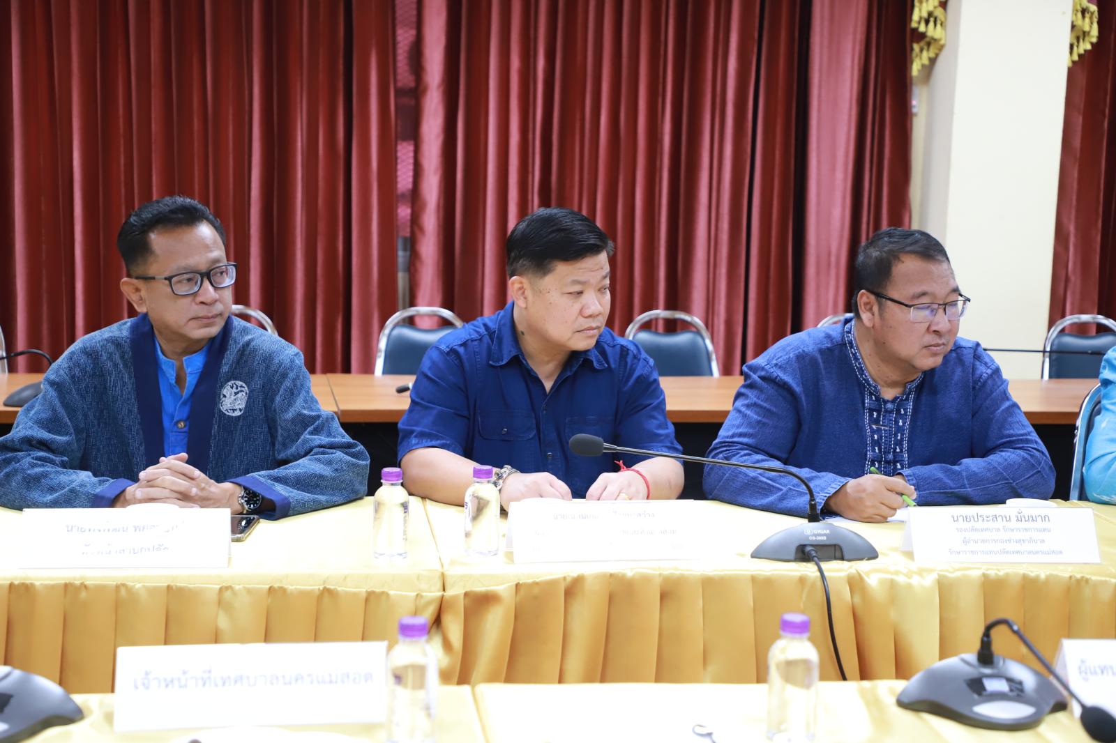ว่าที่ร้อยตรี ประเสริฐ ปวงละคร นายกเทศมนตรีนครแม่สอด พร้อมด้วย คณะผู้บริหาร สมาชิกสภาเทศบาล รองปลัดเทศบาลนครแม่สอด ผู้อำนวยการกอง หัวหน้าส่วนราชการ และเจ้าหน้าที่ที่เกี่ยวข้อง เข้าร่วมการประชุมพัฒนาประเด็นขับเคลื่อนสุขภาวะเขตเมืองเทศบาลนครแม่สอด