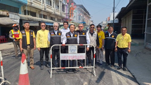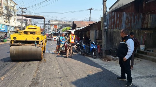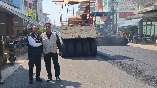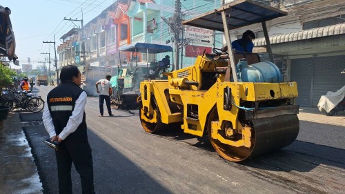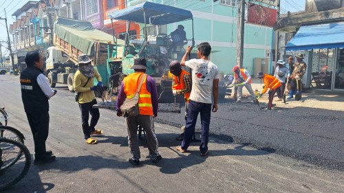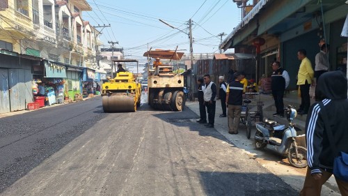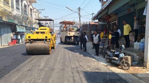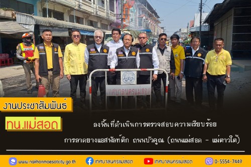 ว่าที่ร้อยตรี ประเสริฐ ปวงละคร นายกเทศมนตรีนครแม่สอด พร้อมด้วย คณะผู้บริหาร สมาชิกสภาเทศบาลนครแม่สอด และเจ้าหน้าที่ที่เกี่ยวข้อง ลงพื้นที่ดำเนินการตรวจสอบความเรียบร้อย การลาดยางแอสฟัลท์ติก ถนนบัวคูณ (ถนนแม่สอด - แม่ตาวใต้)