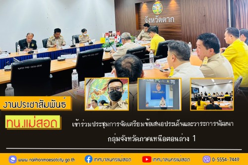 โดย นายประสาน มั่นมาก รองปลัดเทศบาล รักษาราชการแทนปลัดเทศบาลนครแม่สอด รักษาราชการแทนนายกเทศมนตรีนครแม่สอด มอบหมายให้ นายจิรวัฒน์ บุตรศรีพงศ์ ตำแหน่งนักวิเคราะห์นโยบายและแผนชำนาญการ เข้าร่วมการประชุมการจัดเตรียมข้อเสนอประเด็นและวาระการพัฒนากลุ่มจังหวัดภาคเหนือตอนล่าง 1 (จังหวัดพิษณุโลก ตาก เพชรบูรณ์ สุโขทัย และจังหวัดอุตรดิตถ์) ผ่านสื่ออิเล็กทรอนิกส์ โดยมี นายชูชีพ พงษ์ไชย ผู้ว่าราชการจังหวัดตาก เป็นประธานในการประชุมฯ
